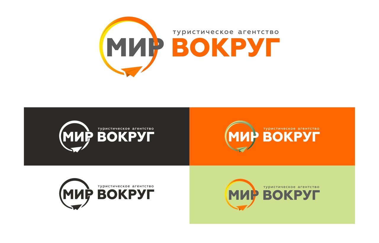 В соответствии с задачей был выбран ярко-оранжевый цвет, слово “мир” вписано в круг, замыкающийся самолетиком, и олицетворяющий путешествия по всему миру.