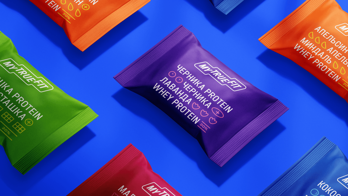 Лаконичная и яркая – такой стала этикетка для новой линейки My true fit. Функциональность – еще одна важная ее характеристика. При разработке продукта важно было создать полноценную систему, которая бы легко раскладывалась на все линейки марки, а также помогала потребителю разобраться во вкусах и формах выпуска продукта