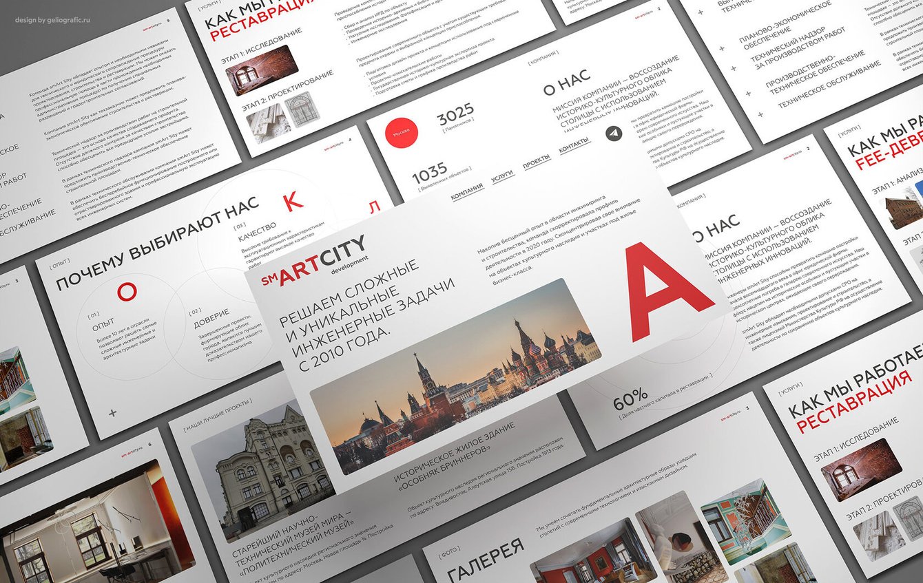 Команда Гелиографик разработала логотип и фирменный стиль для компании Смартсити девелопмент, которая занимается строительством, реставрацией объектов культурного наследия и участков под жилье бизнес-класса. Компания сочетает фундаментальные архитектурные образы ушедших столетий с современными технологиями и изысканным дизайном, обладает необходимыми допусками СРО на инженерные изыскания, проектирование и строительство, а также лицензией Министерства Культуры РФ. В концепцию логотипа руководство компании вложила баланс между сложными техническими решениями и искусство, как наследие и источник вдохновения. Брендбук включает в себя основные положения по построению, размещению логотипа и основные корпоративные материалы: визитка, бланк, конверт.