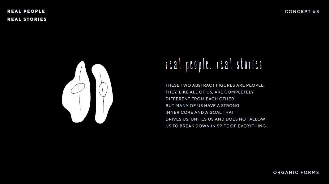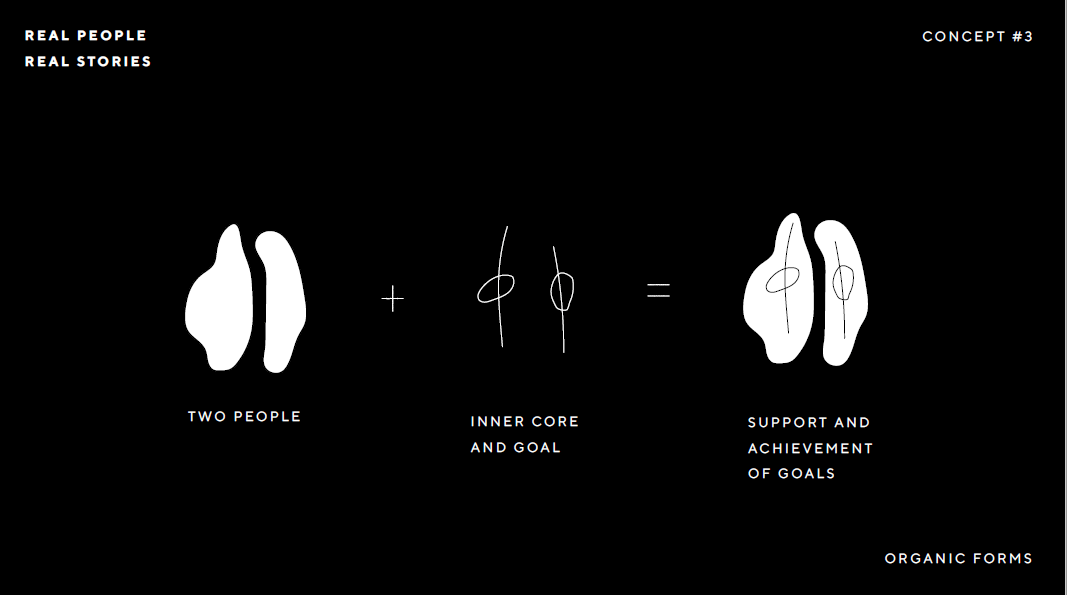 3. Абстрактные фигуры людей, отображающие уникальность каждого. И то, как внутренний стержень и глобальные цели объединяют людей и делают их ещё сильнее.