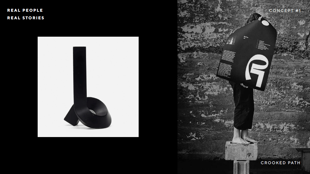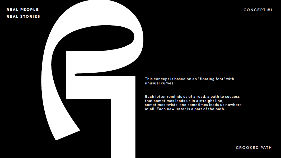 1. Использование "плавающего" шрифта и необычных кривых для репрезентации дороги, по которой идут участники проекта.