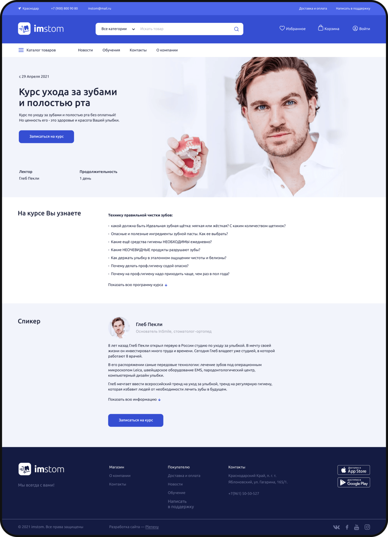 Предусмотрена возможность добавления развёрнутого описания курсов: даты проведения, лектора, продолжительности и содержания. Реализована возможность записи на курс.
