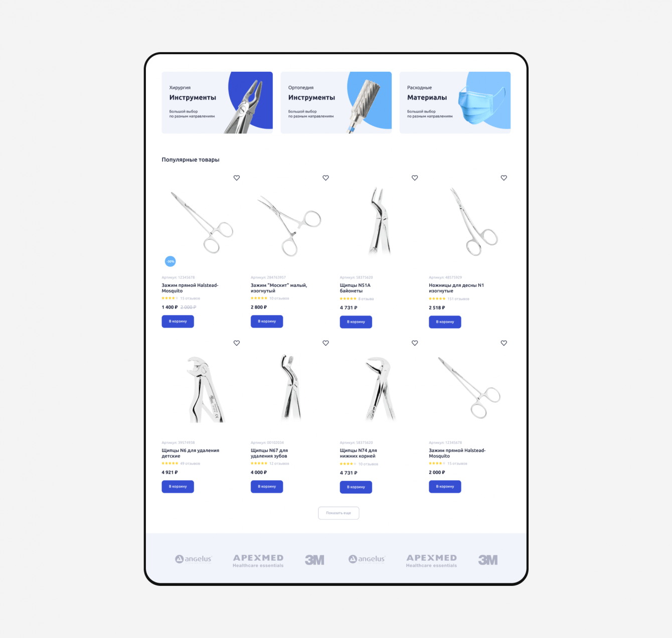 Задача: разработка маркетплейса для продажи стоматологических инструментов, медикаментов и расходных материалов. Основными потребителями являются врачи из разных отраслей стоматологии.