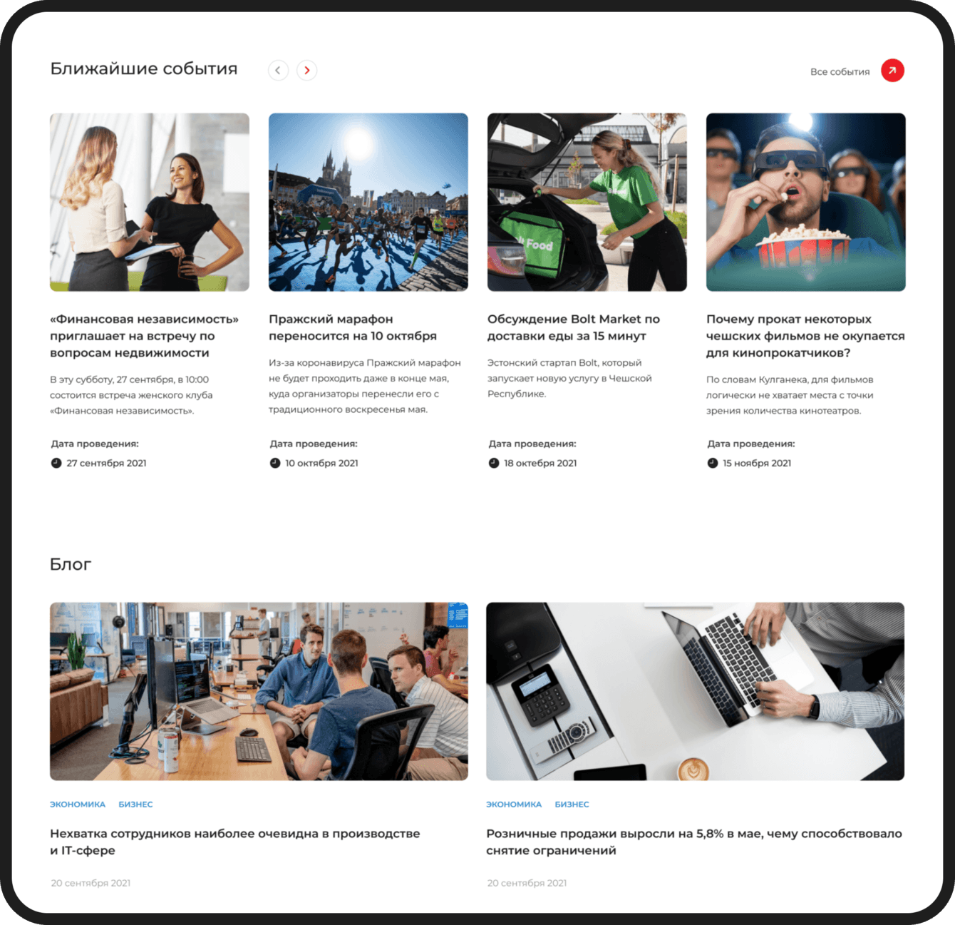 Внимание пользователей площадки акцентируется на ближайших событиях, которые можно пролистать. При нажатии на соответствующую кнопку становится доступна и полная лента событий.