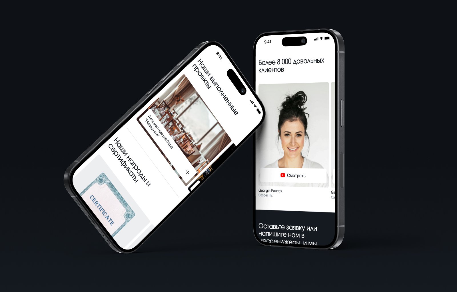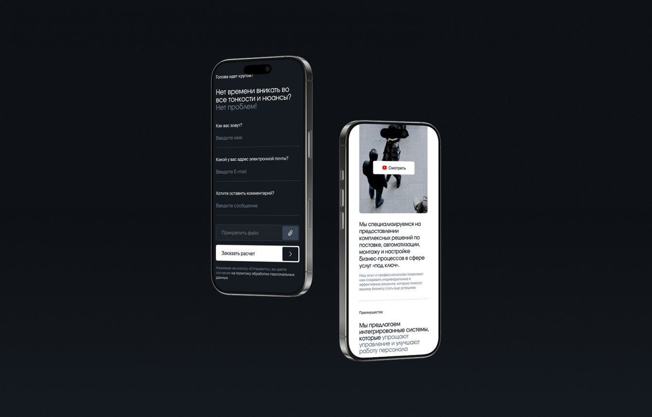 Сначала клиент пришел к нам с небольшим проектом — нужно было сделать лендинг для одной из его услуг. Наша работа и результат ему понравились, поэтому следующим этапом, клиент передал нам разработку собственного корпоративного сайта.