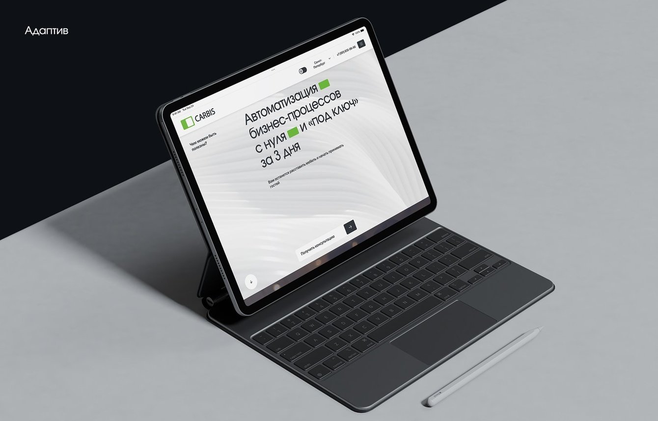 На сайте Carbis типографика выбрана так, чтобы текст был удобен для восприятия: шрифты четкие и легко читаемые. Цвета гармонично сочетаются с фирменным стилем, создавая профессиональный и современный вид. Контрастные элементы выделяют важную информацию, а мягкие оттенки делают текст комфортным для чтения. В целом, всё продумано для того, чтобы подчеркнуть технологичность и надёжность компании.
