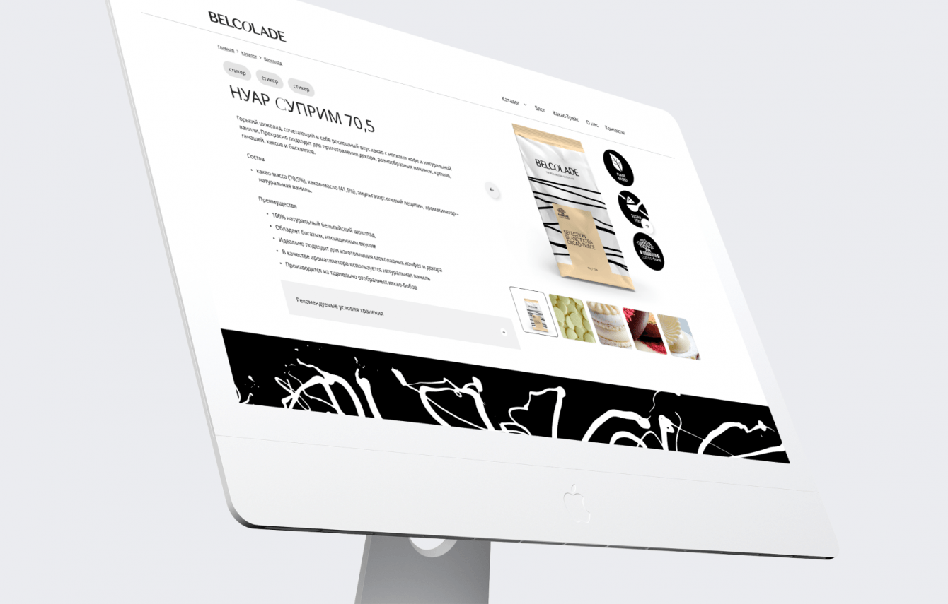 Разработать корпоративный сайт в рамках существующей айдентики бренда Belcolade. Также важной задачей было сохранить принципы организации блоков основного сайта компании для сохранения визуальной преемственности ресурсов.