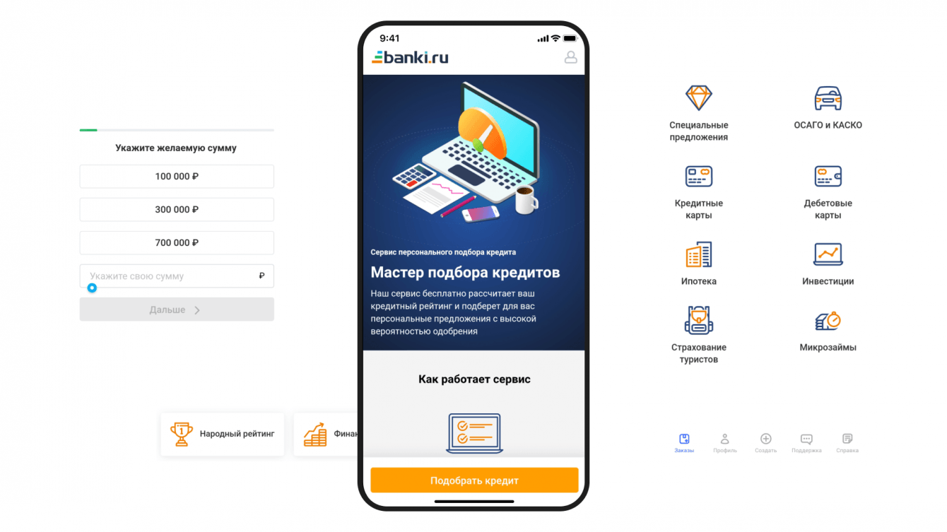 Задача: протестировать гипотезу, что в мобильных приложениях востребован продукт «подбор кредита».