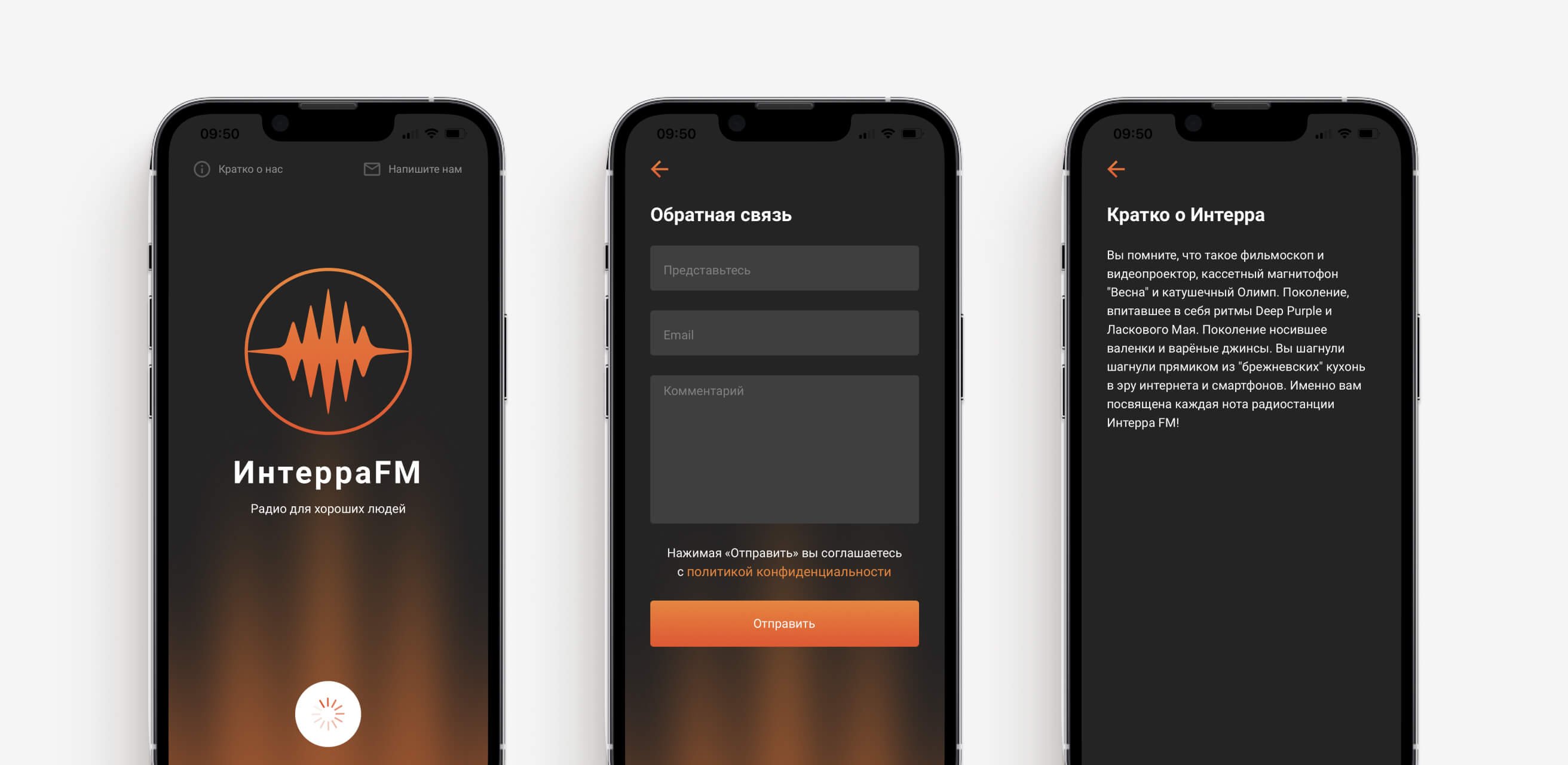 Разработать кроссплатформенное мобильноге приложение радиостанции ИнтерраFM.