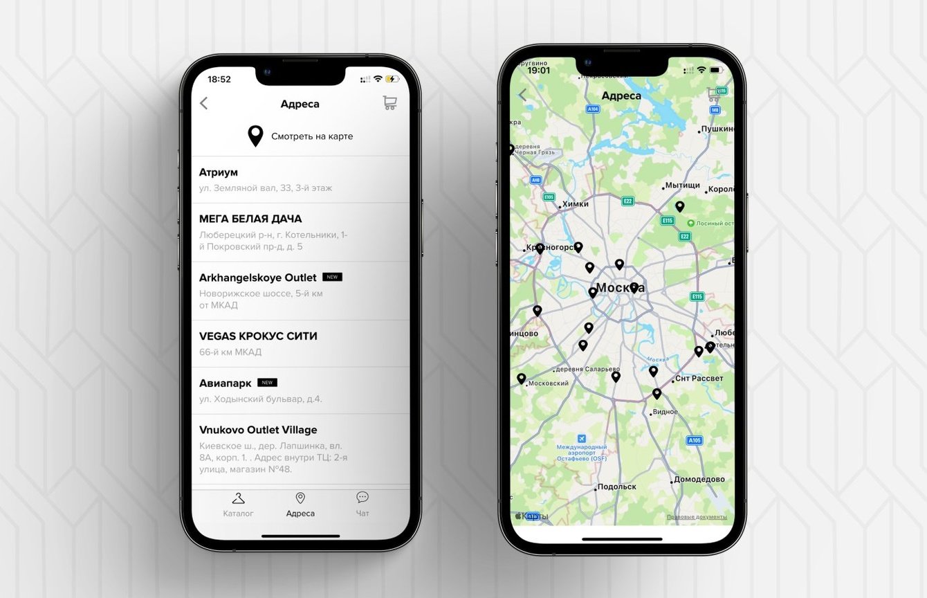 В процессе работы мы усовершенствовали систему поиска физических магазинов для пользователей приложения. Так, в раздел “Адреса” мы интегрировали карту, которая предлагает пользователям ближайшие магазины на основе их геопозиции.