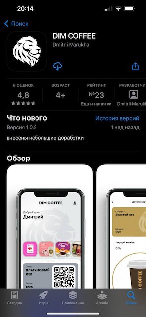 Клиент обратился с задачей сделать мобильное приложение с системой лояльности и бонусами для пользователей, а так же с подсчетом бесплатных стаканчиков.
