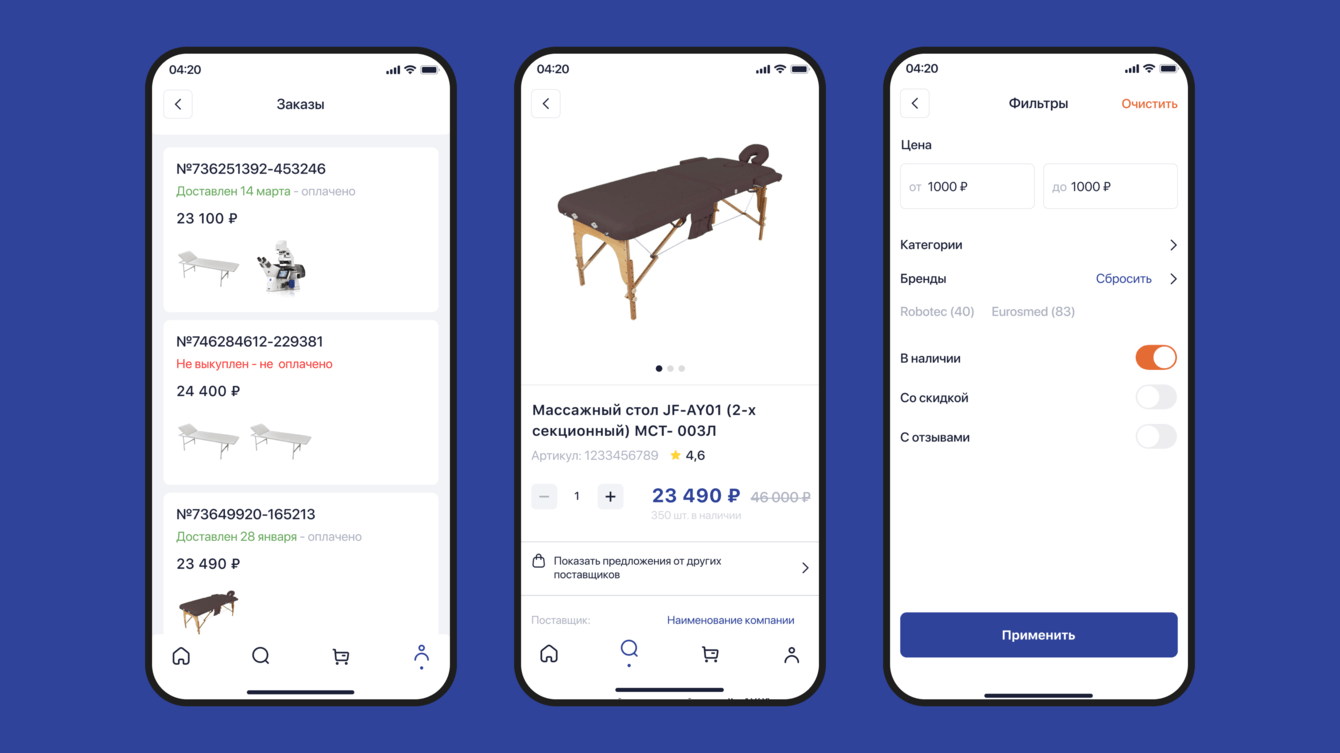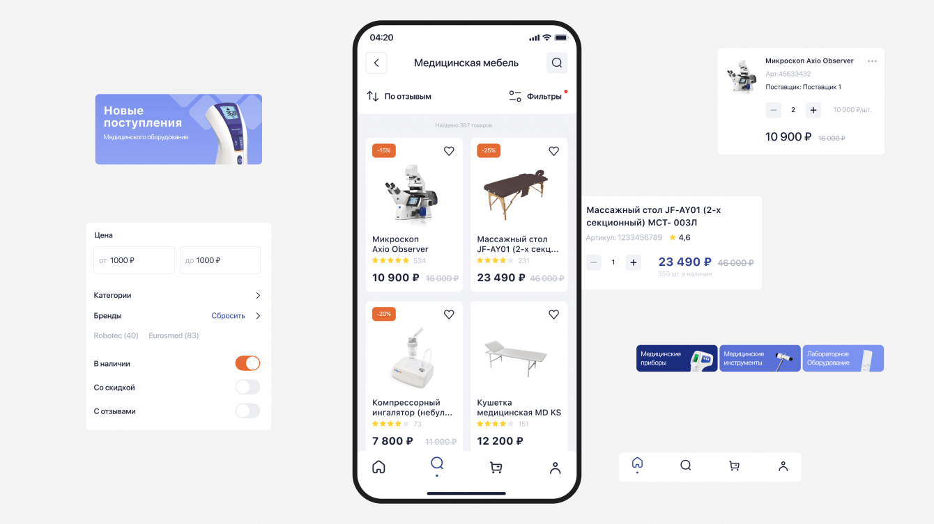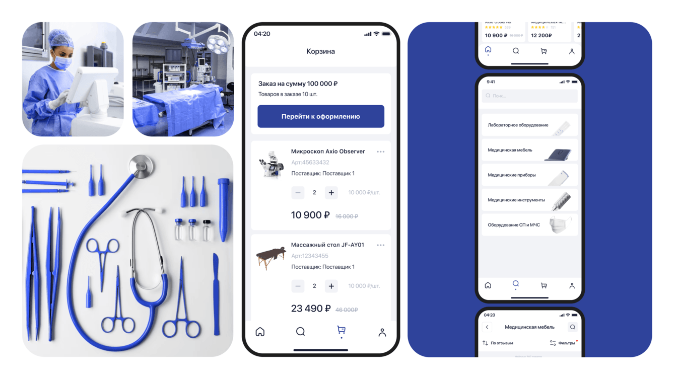 Задача: разработка мобильного приложения для маркетплейса для продажи медицинских товаров. Основными потребителями являются врачи.