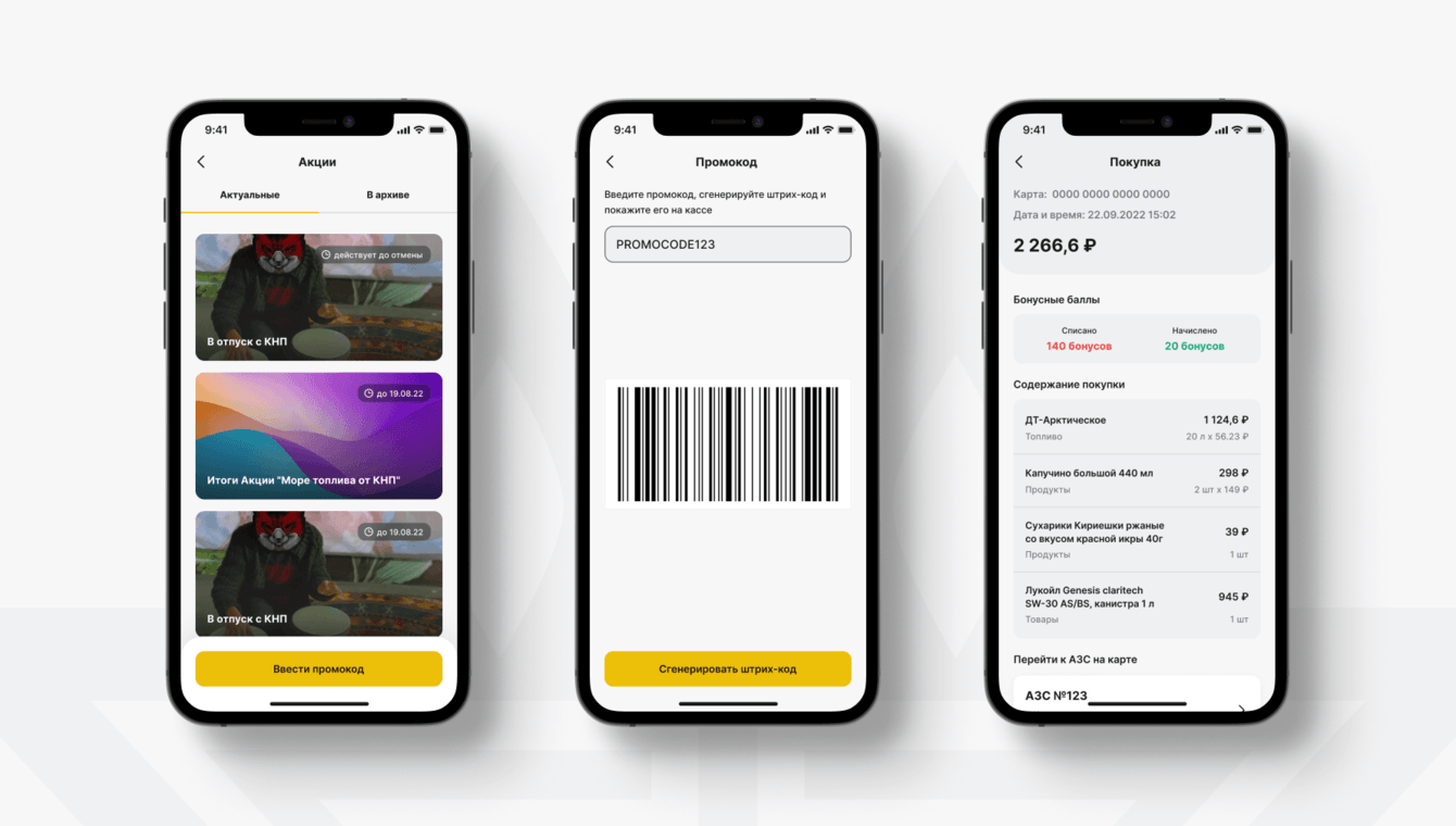 Заказчик хотел получить современное решение, которое повысит качество клиентского сервиса: своевременно проинформирует о начислении и списании бонусов, смене статуса, акциях и других событиях. Приложение должно было стать «представительством» сети АЗС в смартфоне покупателя. Для реализации бонусной программы приложение нужно было интегрировать с CRM-системой, которую использует АО «КНП».