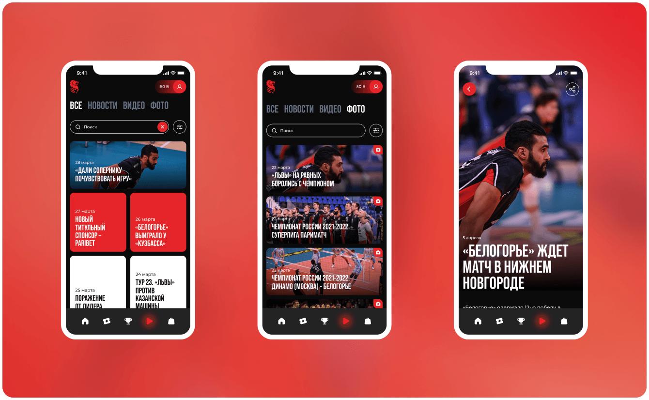 - Функционал приложения включает в себя расписание матчей с возможностью установки напоминаний, онлайн-трансляции, покупку билетов, заказ товаров из магазина и новостную ленту.