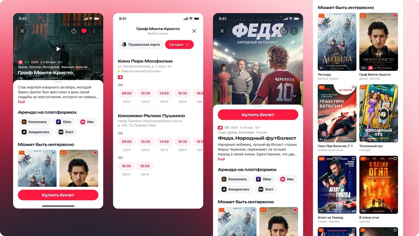 ✅ Гибкая афиша с возможностью масштабирования на другие сети кинотеатров.