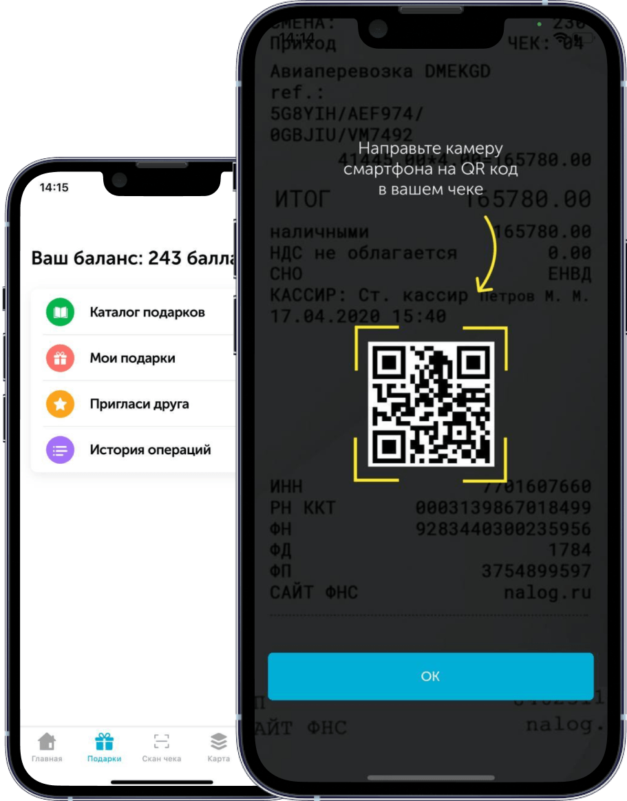 В мобильном приложении также реализован сканер, который позволяет пользователю сканировать QR-код с чека магазина.