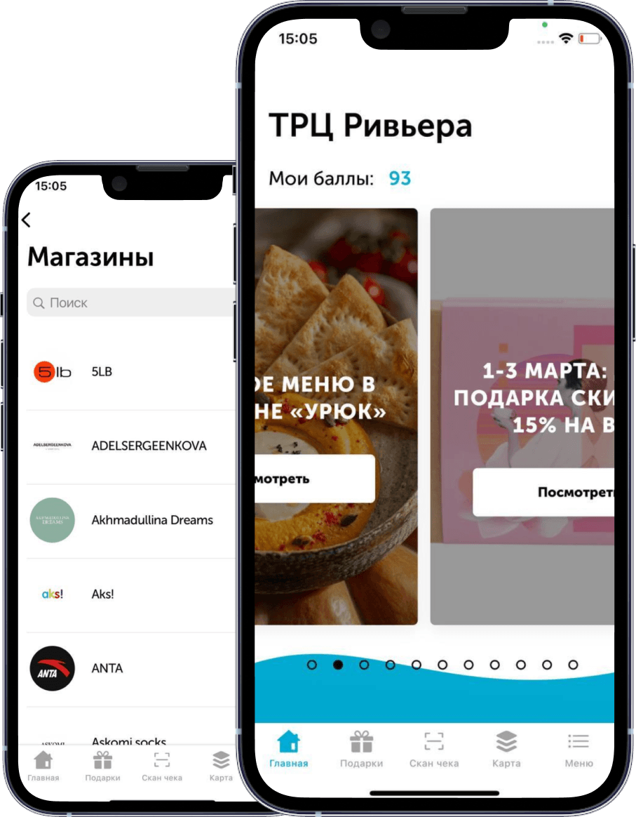 Сборки с возможностью использовать бонусные баллы опубликованы в AppStore, Huawei AppGallery, Google Play и активно используются посетителями ТЦ.