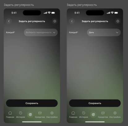 Любой доход или расход можно сделать регулярным: с повторением каждый день, в определённый день недели или определённого числа каждого месяца. Регулярные платежи автоматически отображаются в истории, на главном экране и в платёжном календаре в соответствующие даты.