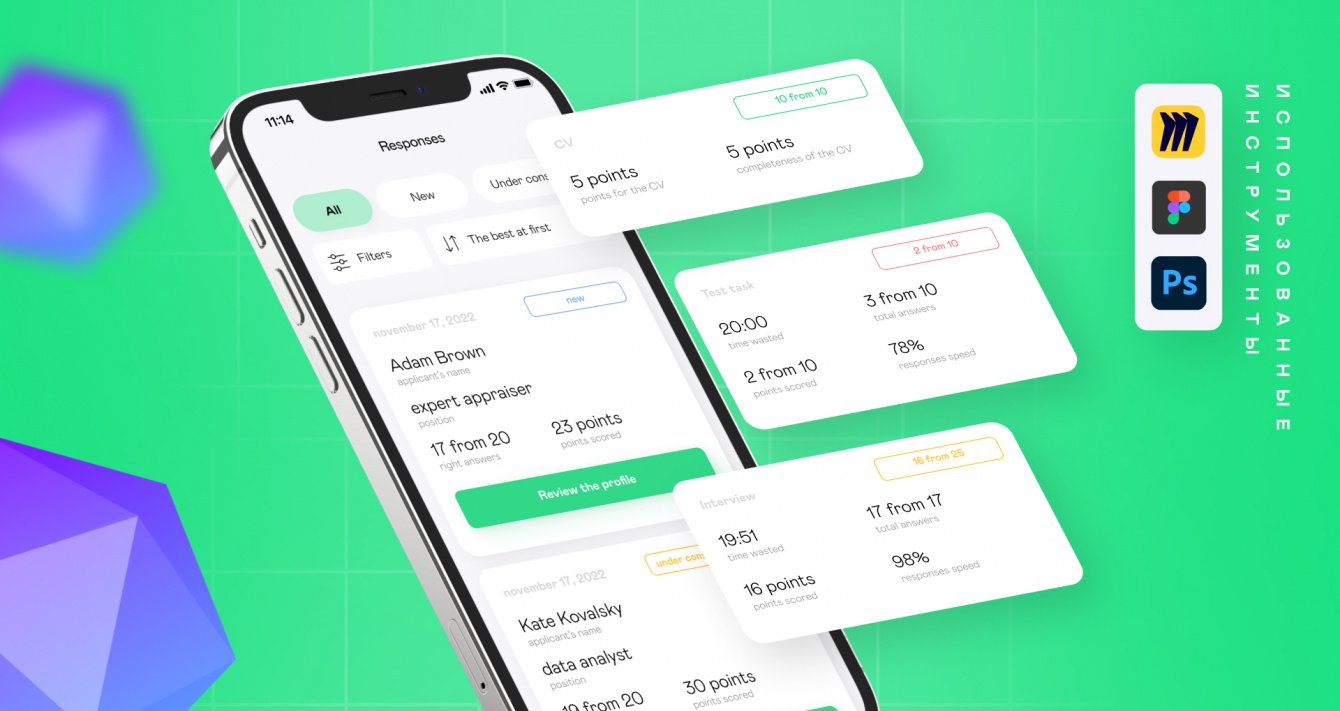 Гибридное мобильное приложение для рекрутеров и кандидатов с уникальными фичами и высокими результатами в первые месяцы релиза.