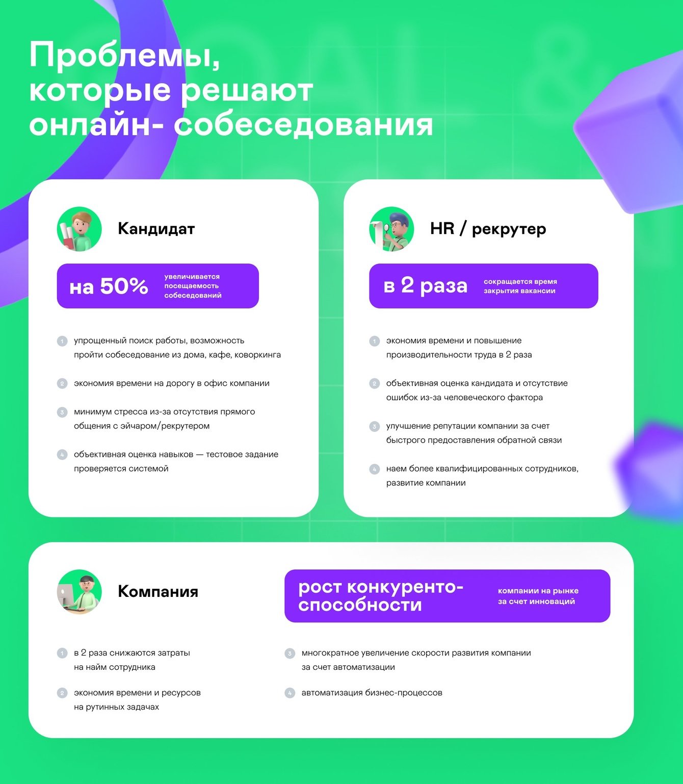 Выяснили, что для кандидатов важны удобные шаблоны CV прямо в приложении, максимально полная база вакансий, тестовые задания не дольше 20 минут, аудио- и видеоформаты собеседований.
