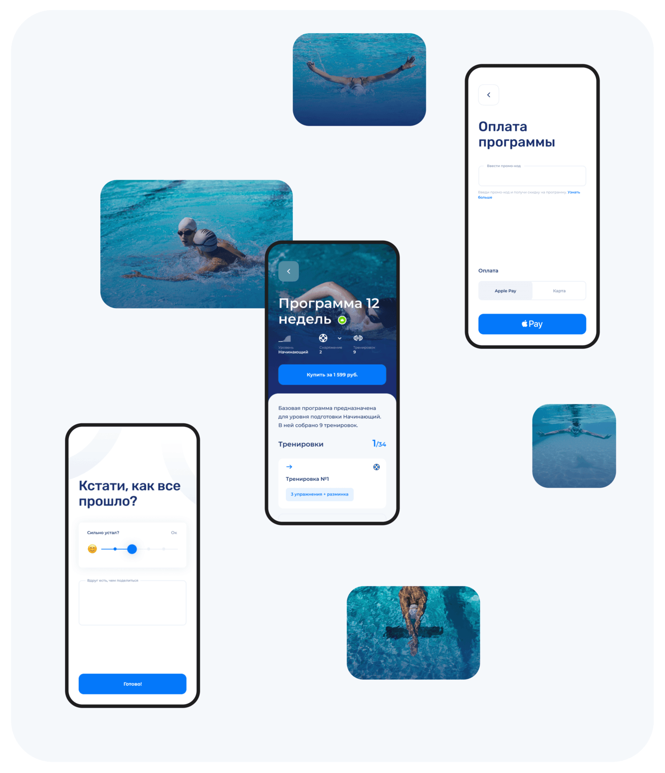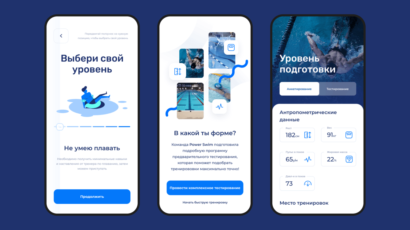 В рамках проекта было разработано мобильное приложение «Power Swim», функционал которого мы частично продемонстрируем в кейсе.