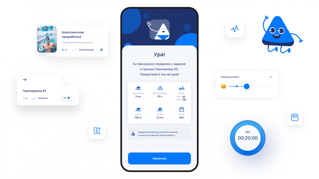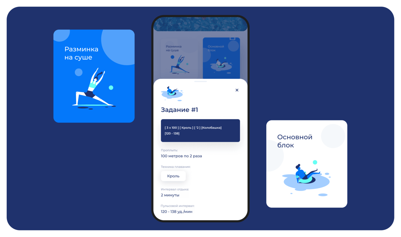 Задача: разработать цифровой тренер для занятий плаванием, алгоритм которого позволит пользователям эффективно готовиться к стартам или просто разнообразить свои тренировки. Формат — мобильное приложение.