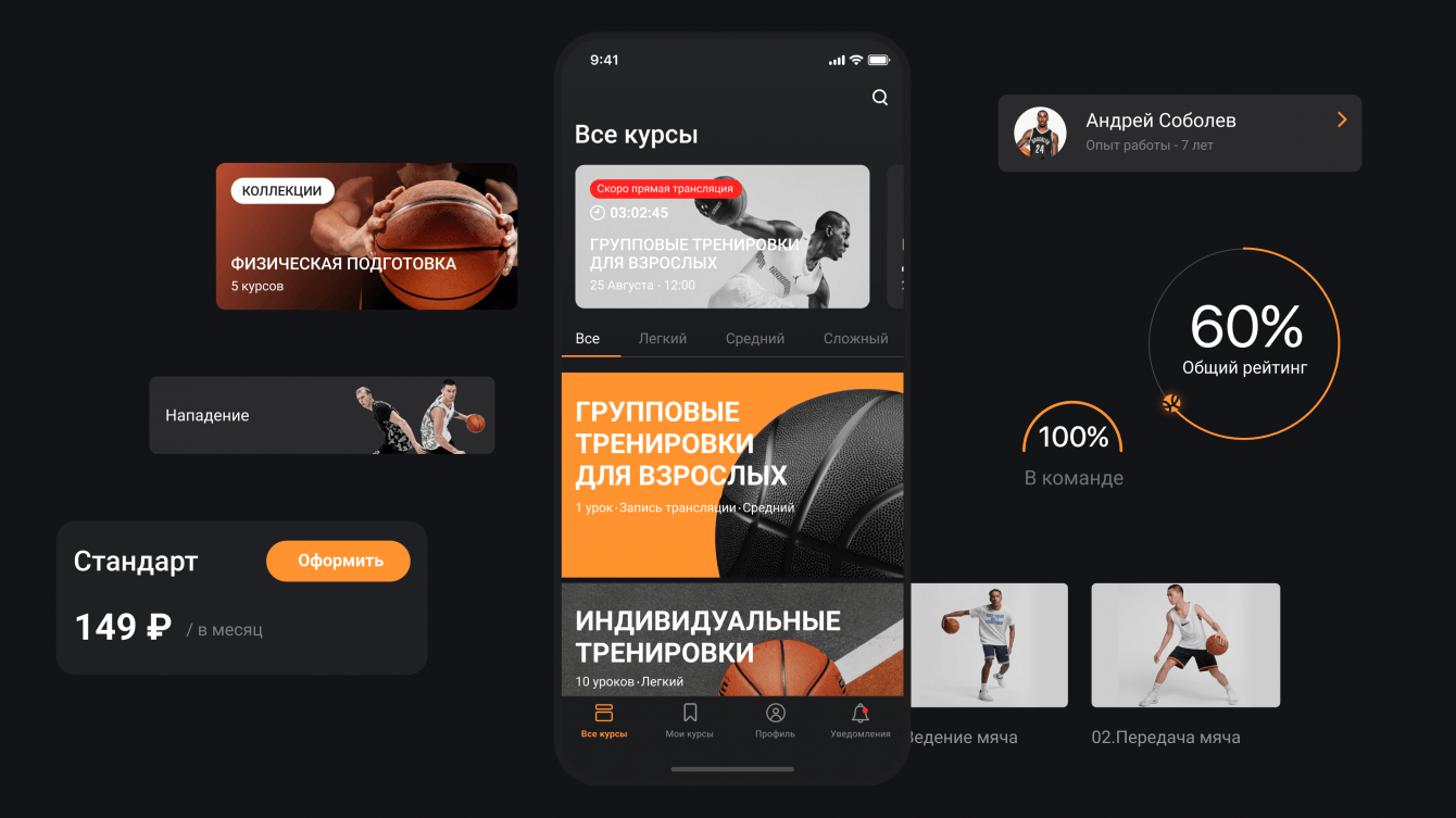 Разработать приложение-тренер по баскетболу, с помощью которого пользователи смогут улучшить свою игру. Сделать удобный инструмент, который поможет отслеживать прогресс и учиться новому.