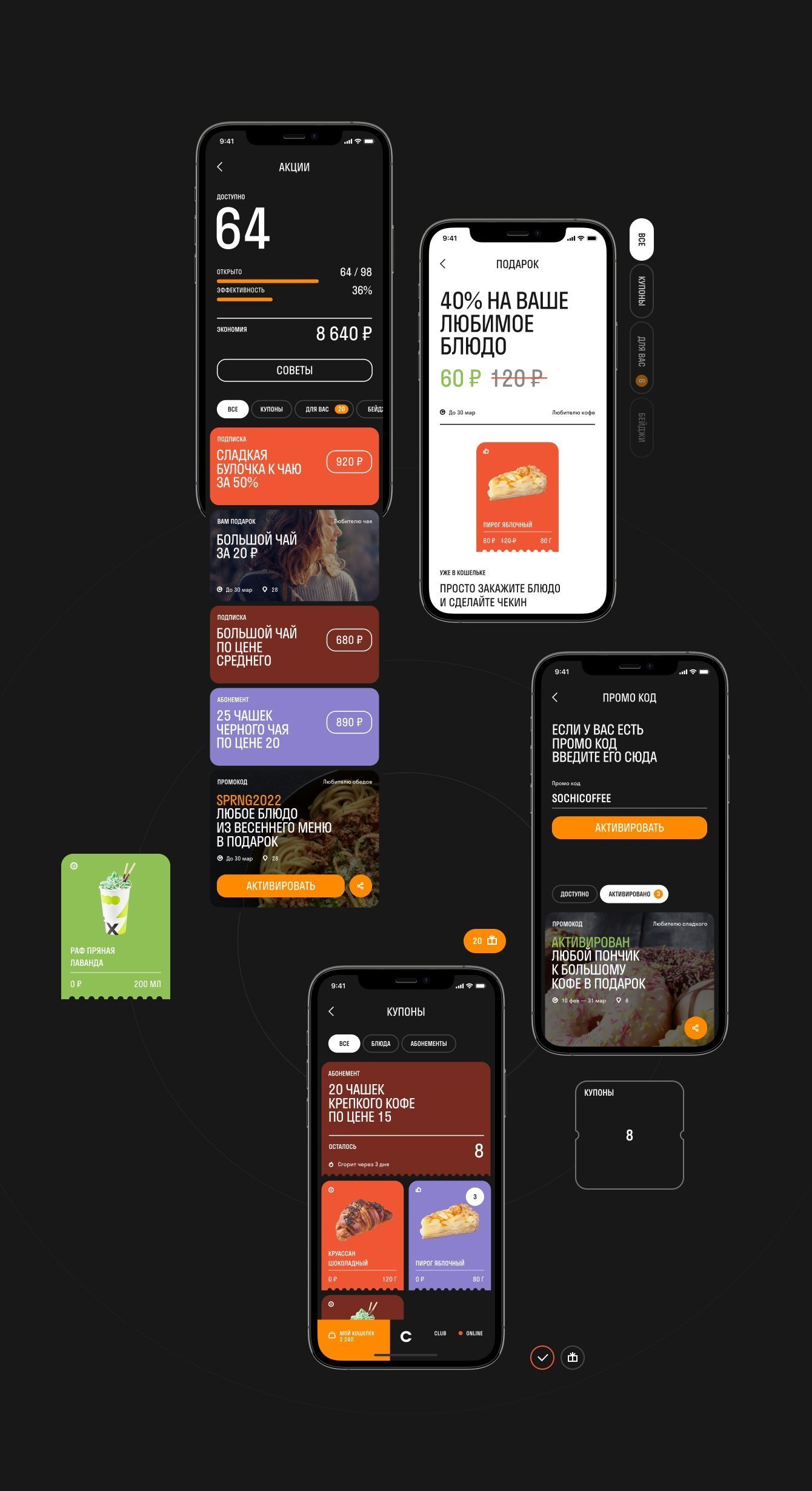 Приложению Сofix Club удалось стать настоящим «отраслевым» примером для сегмента HoReCa. Показывающим, каким должен быть UI/UX для визуализаций многих акционных механик, коллабораций с другими брендами с использованием промокодов и геймификации.