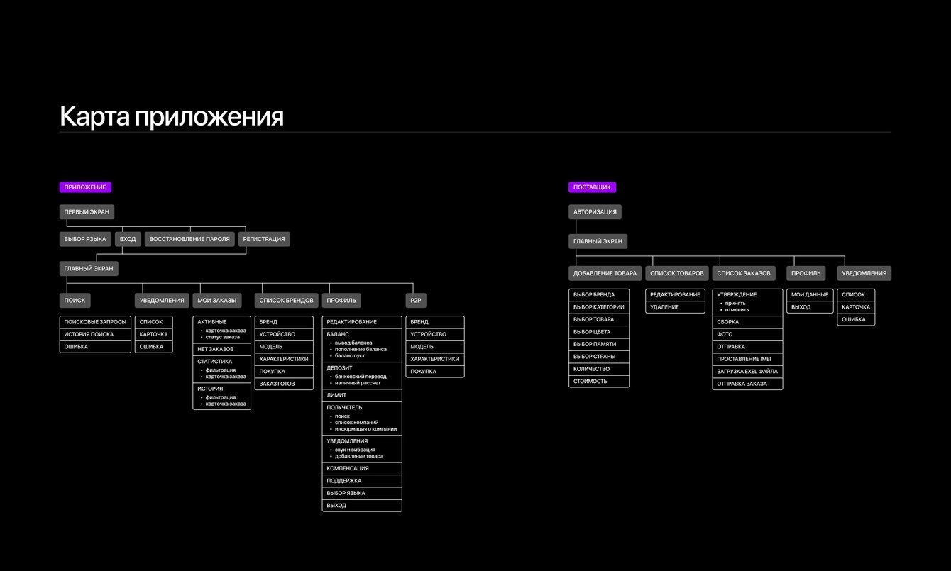Создать мобильное решение, которое упростит и ускорит процесс оптовых закупок электроники, обеспечив удобную коммуникацию между производителями, поставщиками и магазинами по всему миру. Платформа должна стать универсальным инструментом для поиска, переговоров и заключения сделок в режиме реального времени.