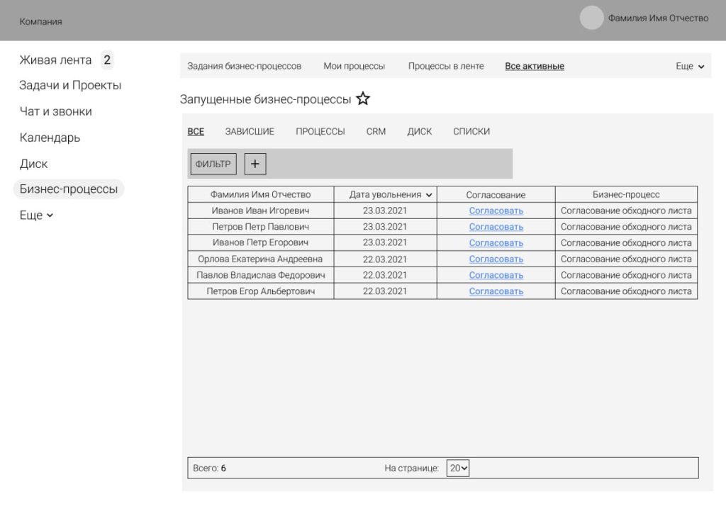 3. Автоматическое запуск бизнес-процесса утверждения обходного листа при увольнении работника.