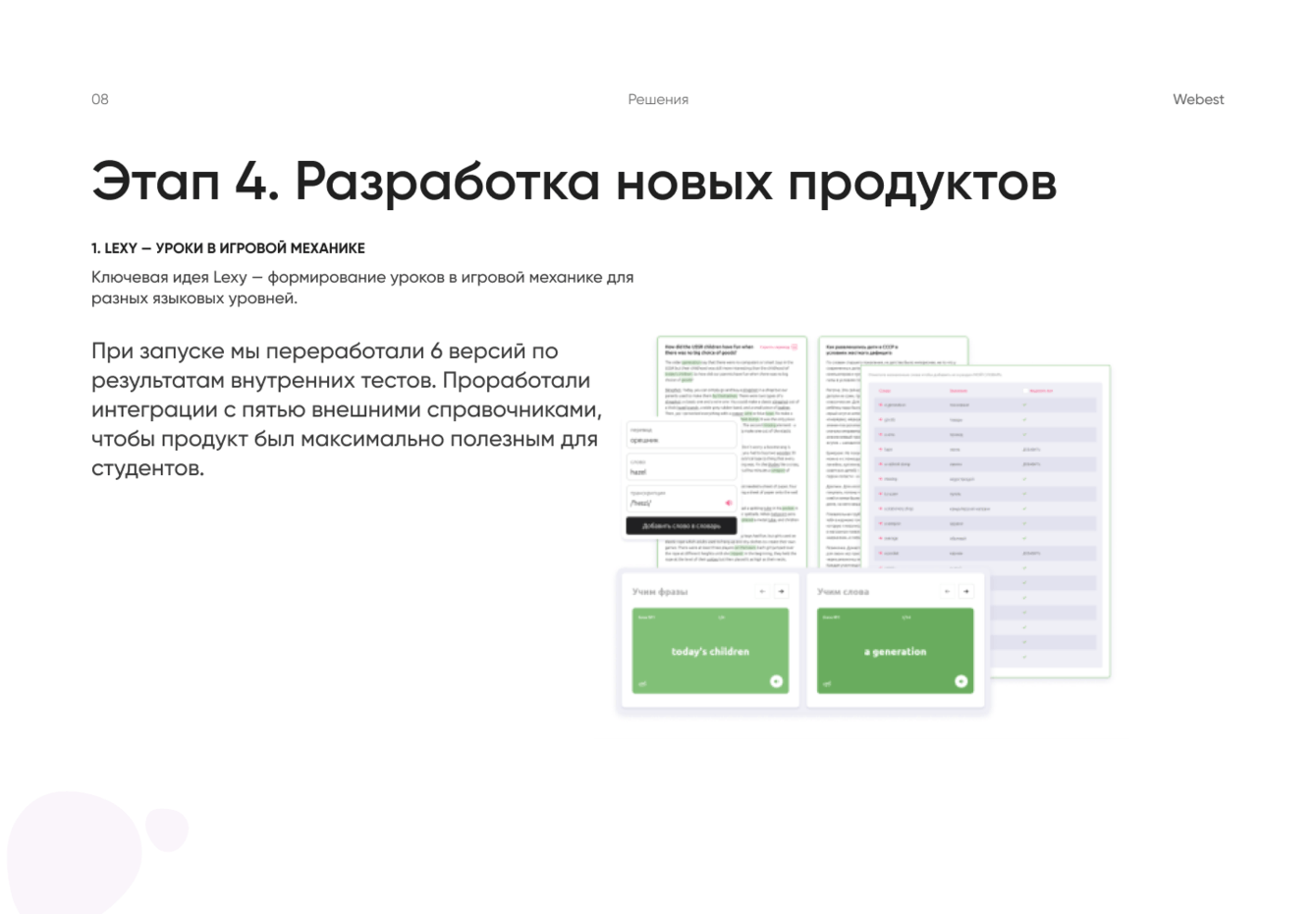 Ключевая идея Lexy — формирование уроков в игровой механике для разных языковых уровней.