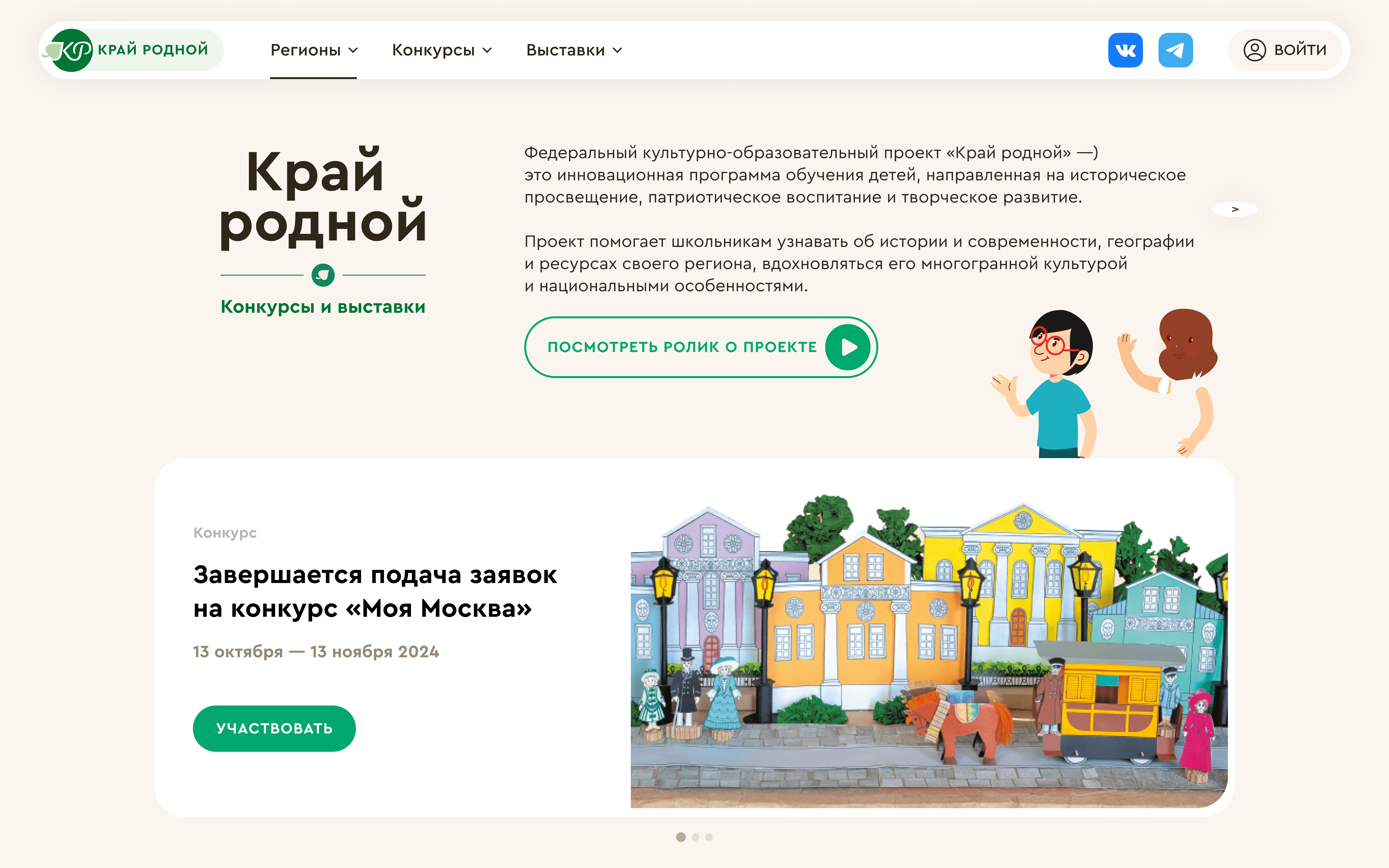 Экосистема порталов «Край родной» — значимый проект для формирования гражданского сознания и деятельного патриотизма с самого раннего возраста. Он ориентирован на детей дошкольного возраста и школьников, и реализован благодаря совместной работе двух команд — издательства АСТ-Пресс Школа и разработчиков. Сначала проект включал только интерактивные пособия, которые вовлекают детей в изучение своей малой родины, дают им почву для размышлений и новые знания. А после — дал детям возможность участвовать в конкурсах и встречаться на офлайн-мероприятиях, заводить новых друзей-единомышленников, реализовывать совместные проекты.