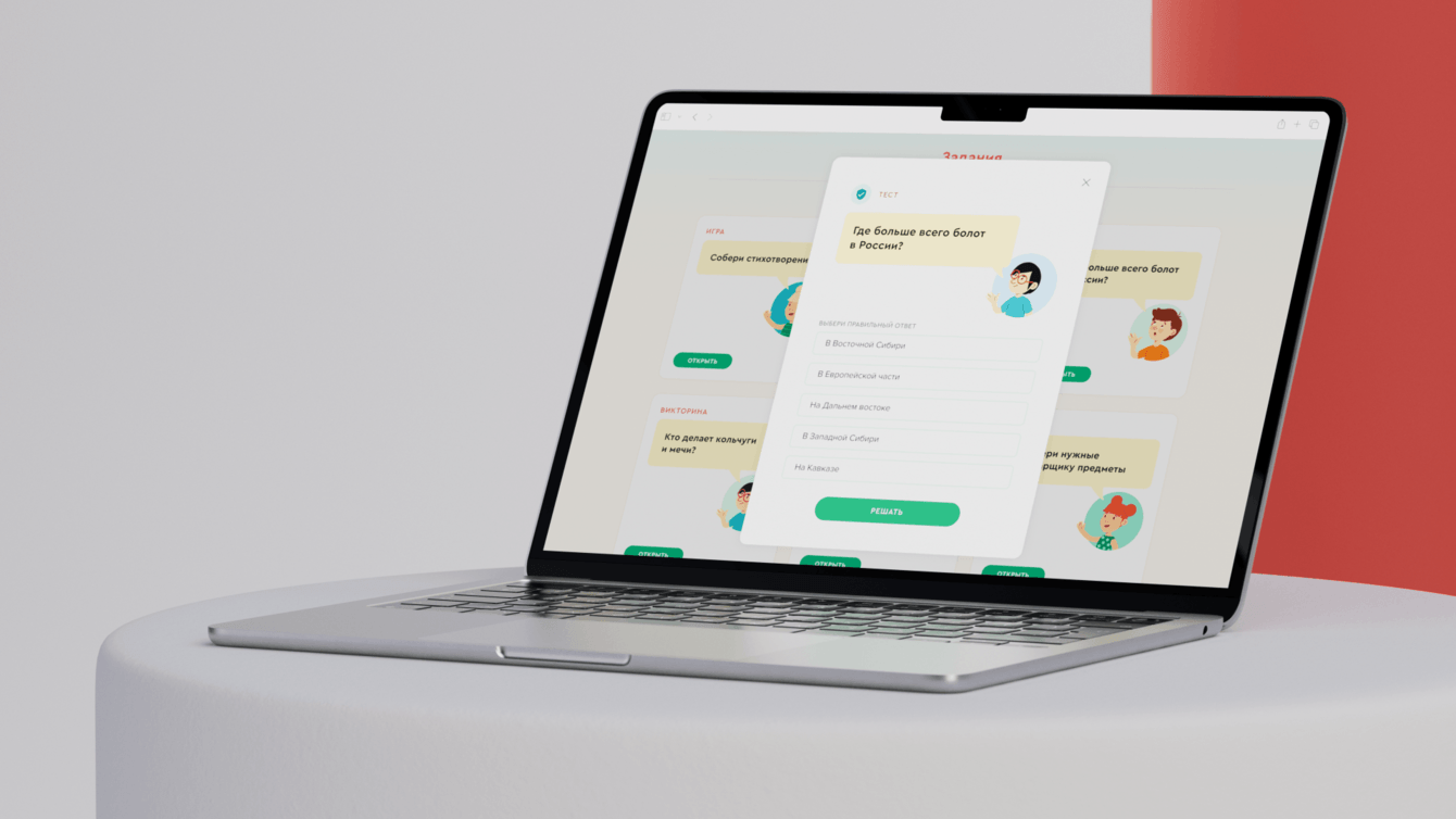 Представители издательства обратились к нам, чтобы мы разработали сам портал, который «оживит» учебное пособие и будет интересен школьникам. Заказчик не остановился на Москве: параллельно с московским порталом мы создали сайт для дагестанских школьников. Позже разработали отдельные сервисы для Ямала и Югры и платформу для проведения творческих конкурсов в разных регионах.