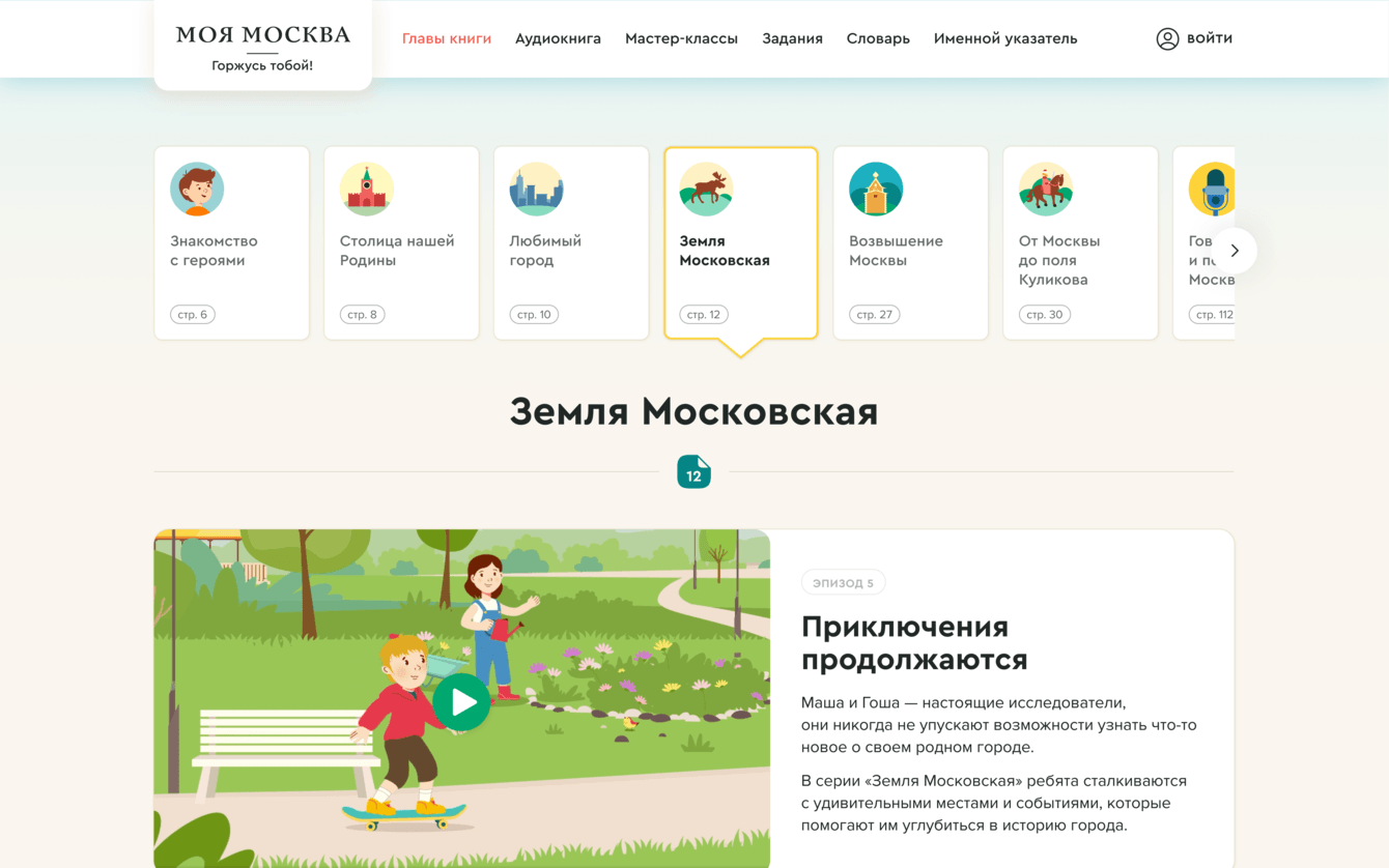 — Изучить интерактивный учебник по краеведению, в котором текст сопровожден звуком, анимацией — вместе с героями книги, школьниками Машей, Настей, Русланом, Гошей и Даниилом, ребята погружаются в разные периоды жизни Москвы;