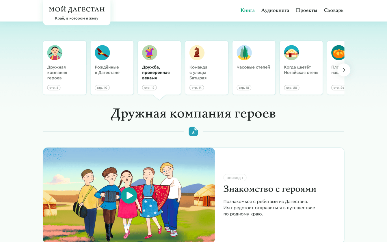 После этого мы создали платформы для других регионов — Дагестана, Ямала, Югры, и продолжаем работу. Электронные пособия для каждой части нашей страны уникальны и составлены с учетом ее особенностей, истории и национальных традиций. Например, дагестанские школьники «путешествуют» вместе с маленькими жителями республики — по каньонам и степям, собирают персики и груши с зеленых деревьев, играют в шахматы, ткут ковры, создают предметы быта и украшают унцукульскими насечками.