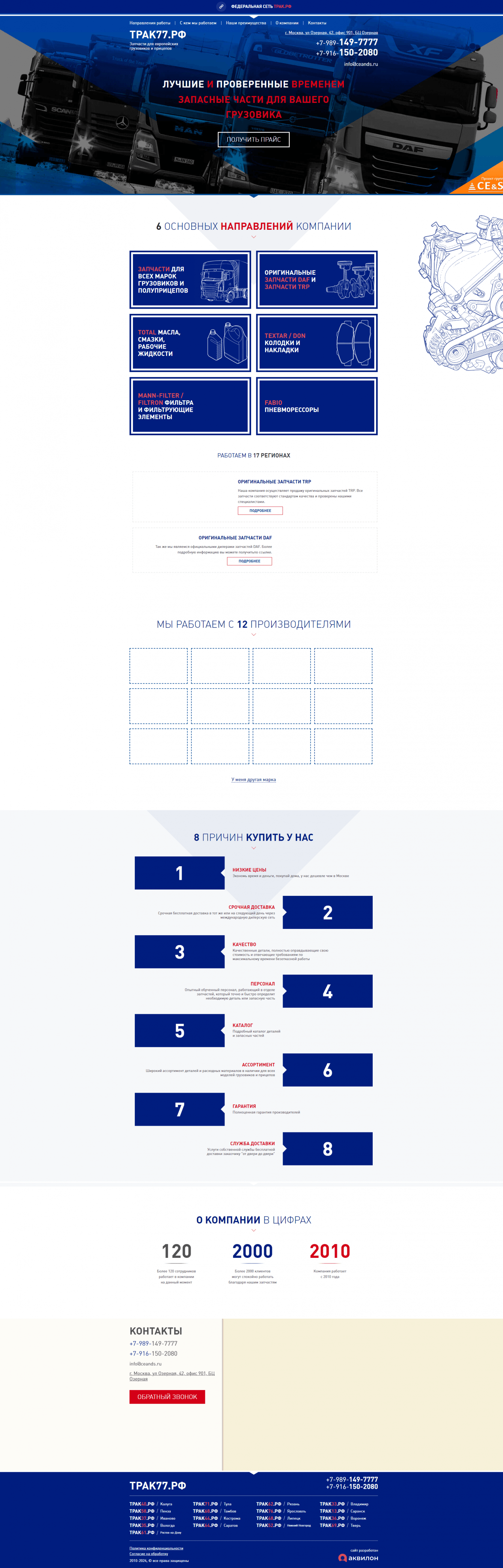 Клиент: Сеть магазинов ТРАК.РФ по всей России. Занимается комплектацией магазинов, СТО и транспортных предприятий полным спектром запчастей для грузовиков.