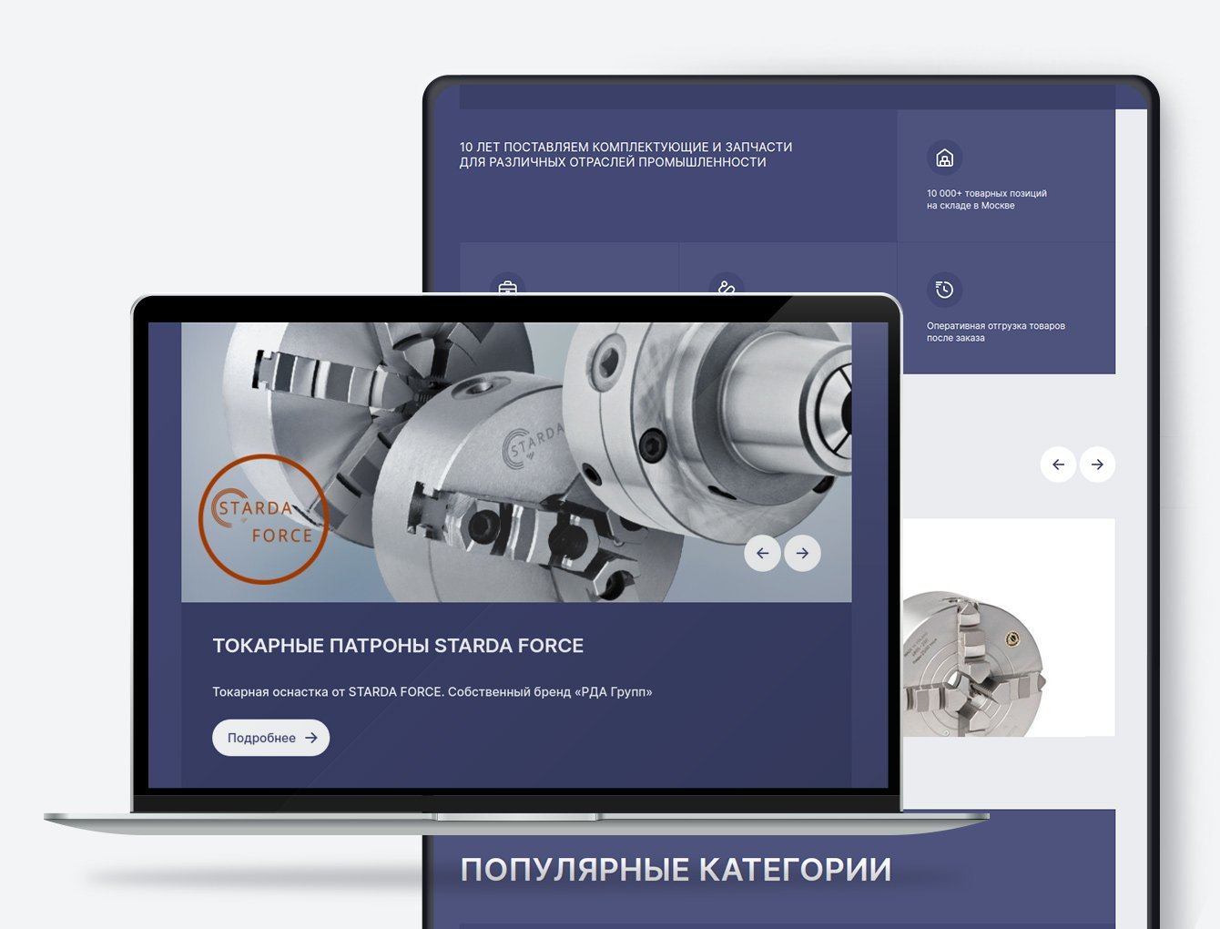 Задача: Компании “РДА-ГРУПП” понадобился сайт для нового проекта по продаже токарной оснастки. Клиент поставил перед нами задачу, в рамках которой нам предстояло за ограниченные сроки создать объемный онлайн-каталог со всей имеющейся продукцией.