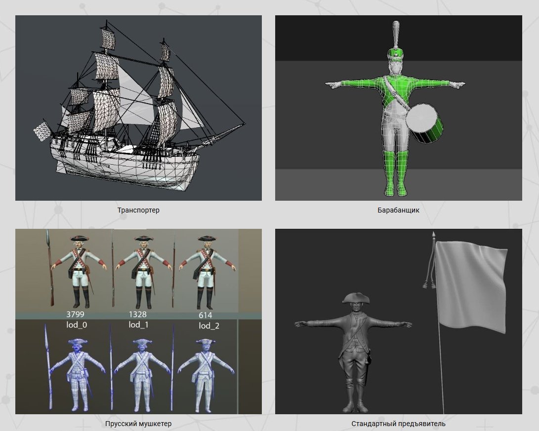 - Моделирование зданий и солдат по историческим источникам XVII-XVIII веков.