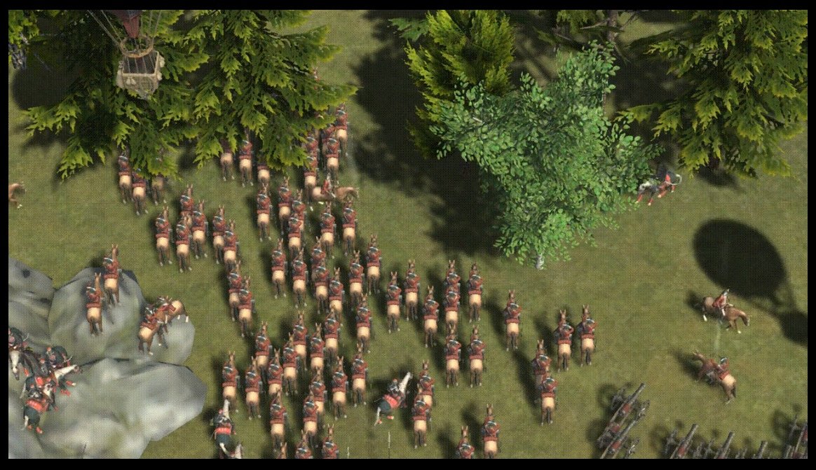 - Юниты действуют осмысленно: кавалерия обходит пехоту, артиллерия стреляет с безопасного расстояния, а солдаты ищут укрытие во время обстрела.