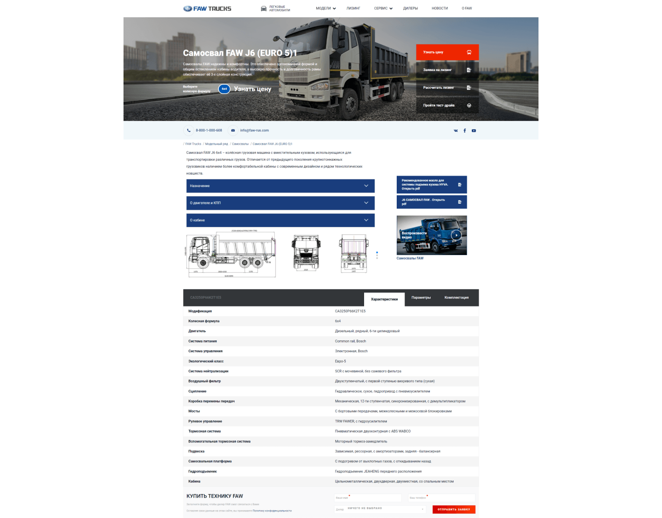 Разработка сайта для китайского бренда грузовой техники FAW Trucks.
