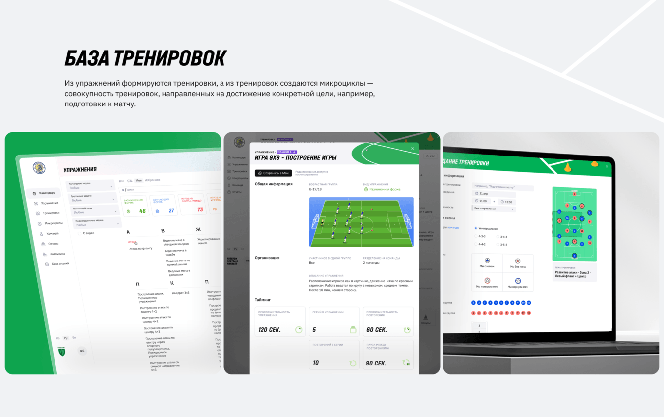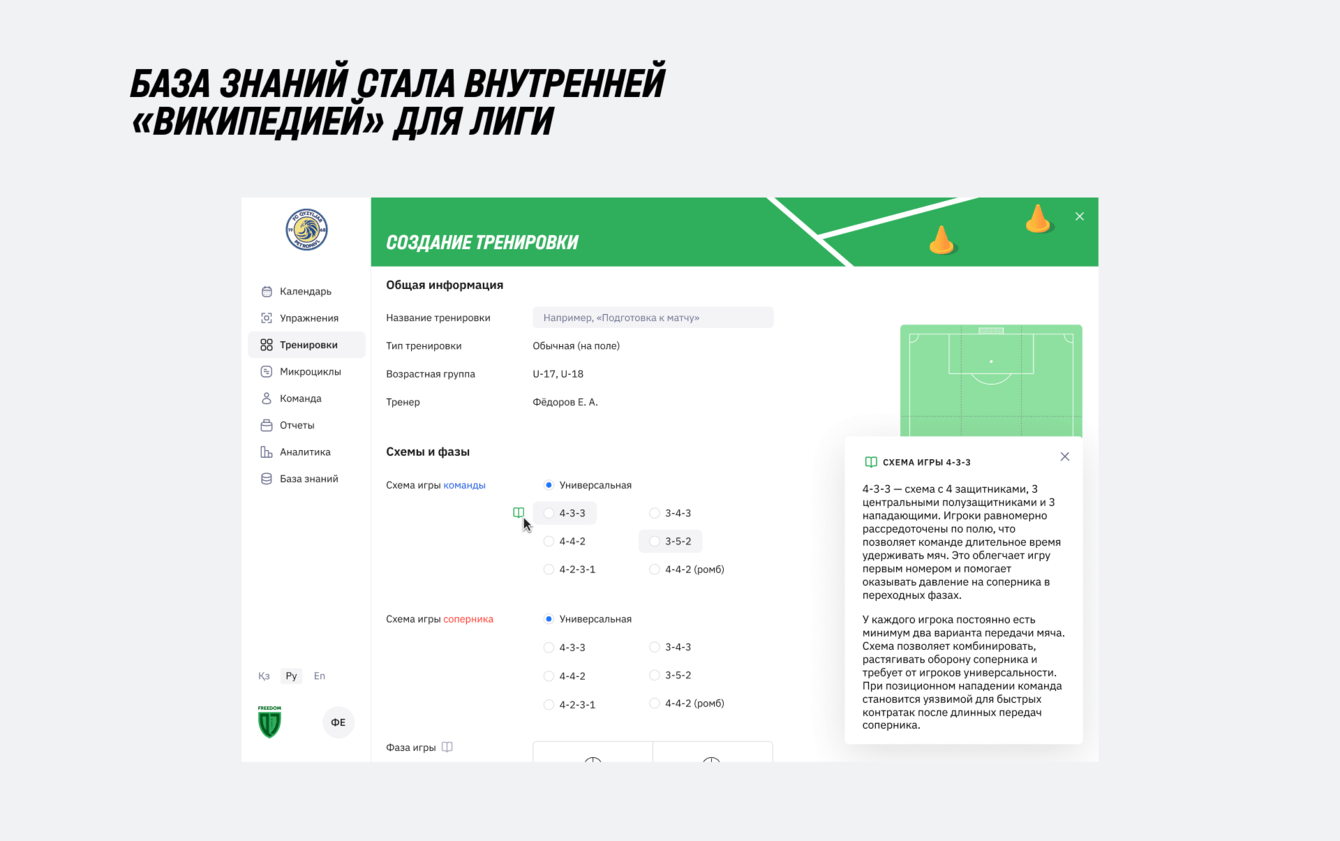 В итоге тренер получает готовый план-конспект тренировки с эскизами и схемами. Платформа упрощает его работу, избавляя от рутины, и позволяет больше времени уделять подготовке команды.