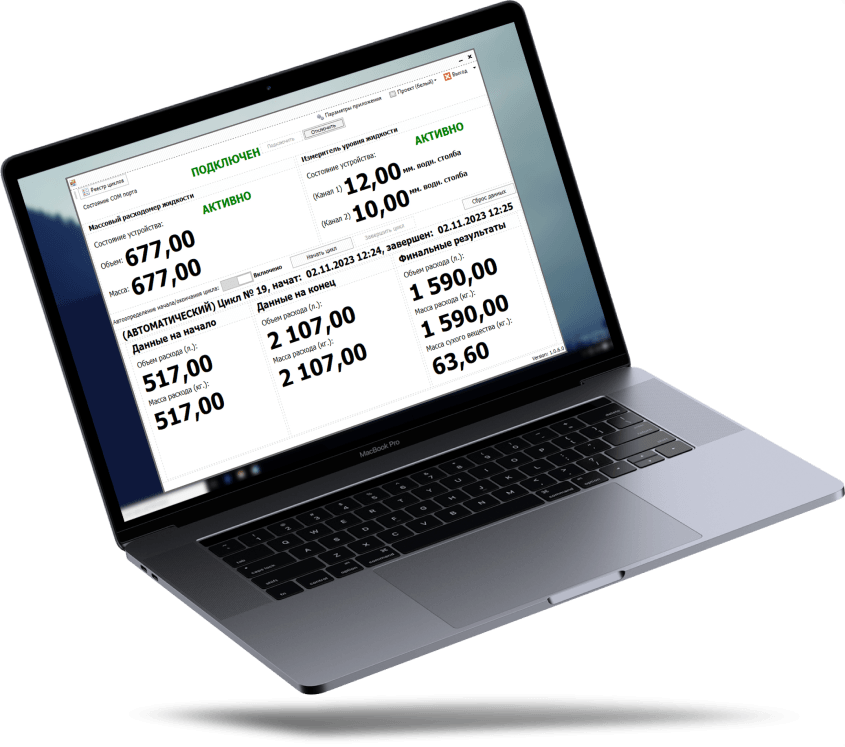 Используемые при технологических процессах наполнения жидкостями производственных емкостей приборы «Массовый расходомер жидкости» (MFC400) и «Измеритель и ПИД-регулятор» (ECD2) предоставляют возможность получения различных показателей потока (объем, масса и т.д.) в процессе циклов наполнения по протоколу MOTBUS RTU (физическая шина RS-485, COM-порт). Заказчику требовалось разработать ПО для считывания показателей с приборов, чтобы операторы в режиме реального времени могли отслеживать параметры потока жидкости, а также циклы наполнения жидкостью в ручном и автоматическом режиме.