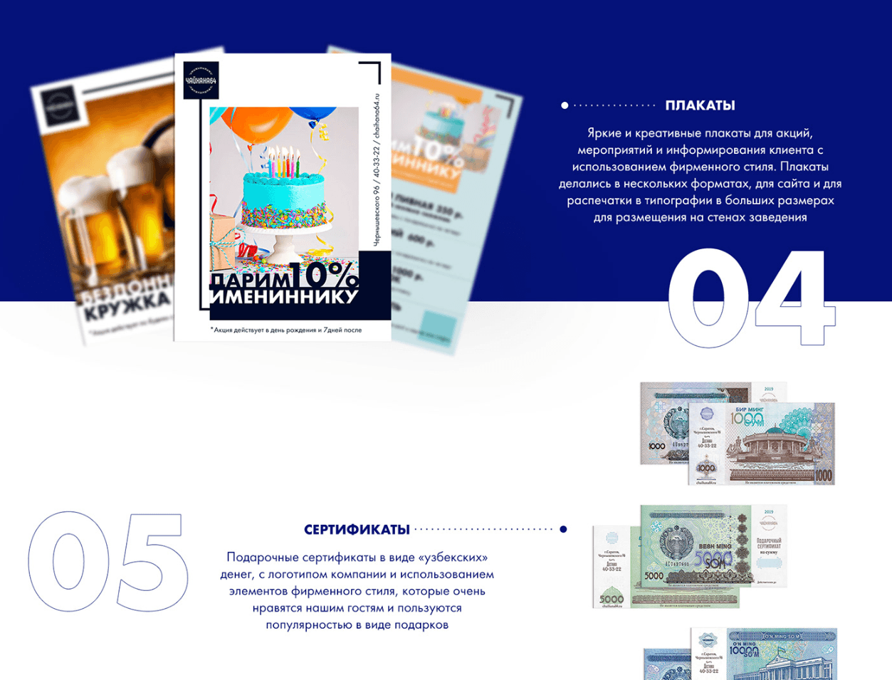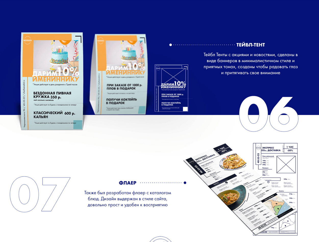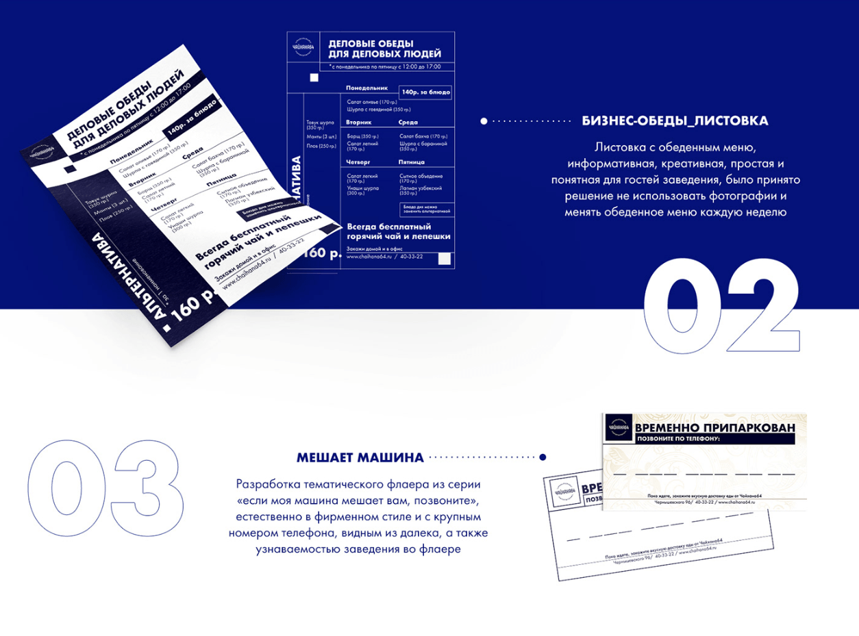 Необходимо было создать элементы фирменного стиля и печатную продукцию для заведения Чайхана 64. В сжатые сроки требовалось разработать минималистичные и тематические детали, которые будут постоянно использоваться в печатной продукции различных направлений.