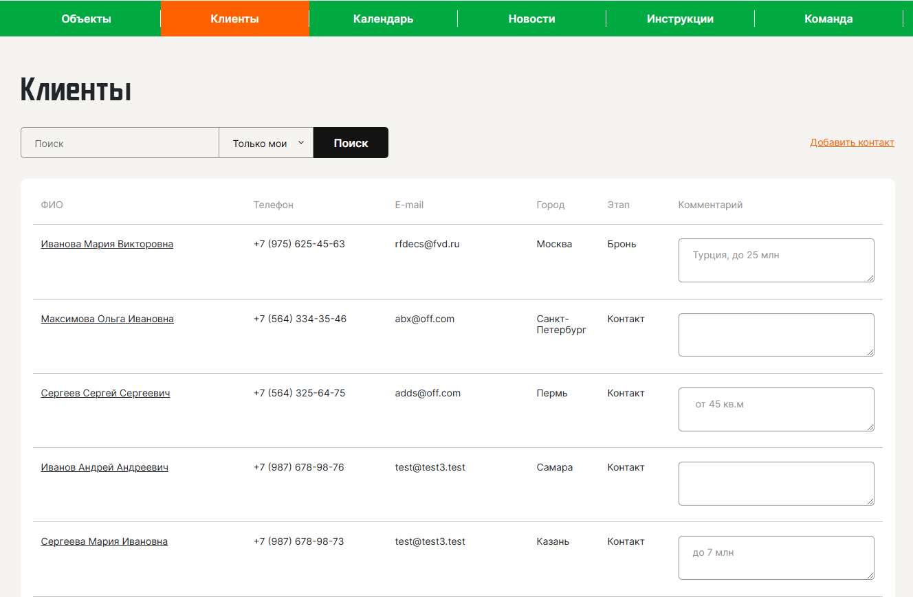 В CRM будет выведена работа сотрудников компании (предварительно до 12-ти пользователей портала), оттуда будет редакти-роваться товарный каталог, воронка продаж для риелторов, и там также видны будут все сделки по всем клиентам (риелторам).