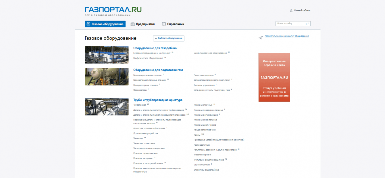 Разработать портал, ориентированный на производителей, продавцов и покупателей промышленного газового оборудования. Продвинуть проект в поисковых системах. Настроить рекламную кампанию в Яндексе.