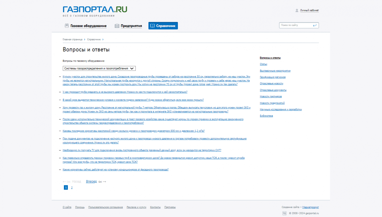 — предоставление посетителям информации о новых (важных) событиях в сфере промышленного газового оборудования;