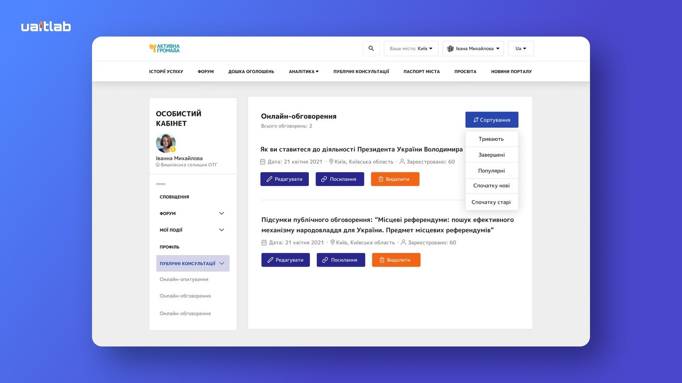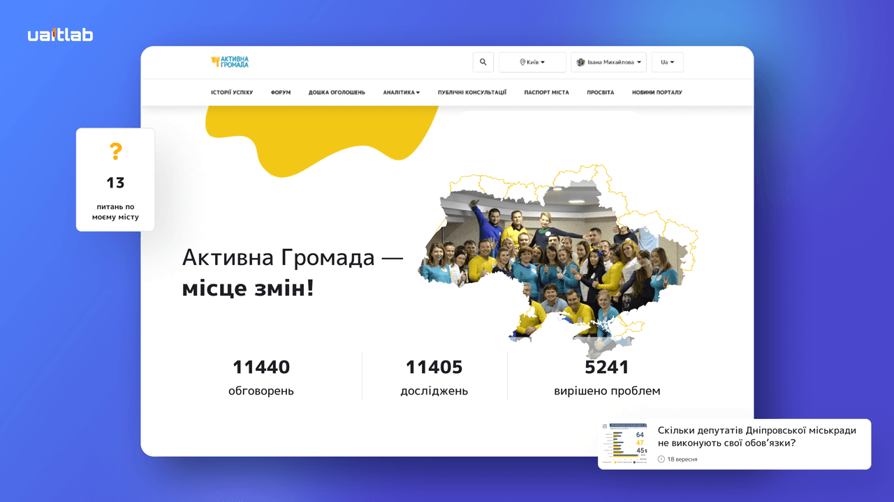 Ввели систему хештегов, чтоб пользователям было проще искать нужные темы и вынесли в отдельные блоки рейтинг самых активных комментаторов, авторов, благодаря чему можно легко просматривать самые актуальные обсуждения, формировать свою личную ленту новостей и просматривать обновления других граждан на актуальные темы. Это решение для улучшения рубрикации материалов.