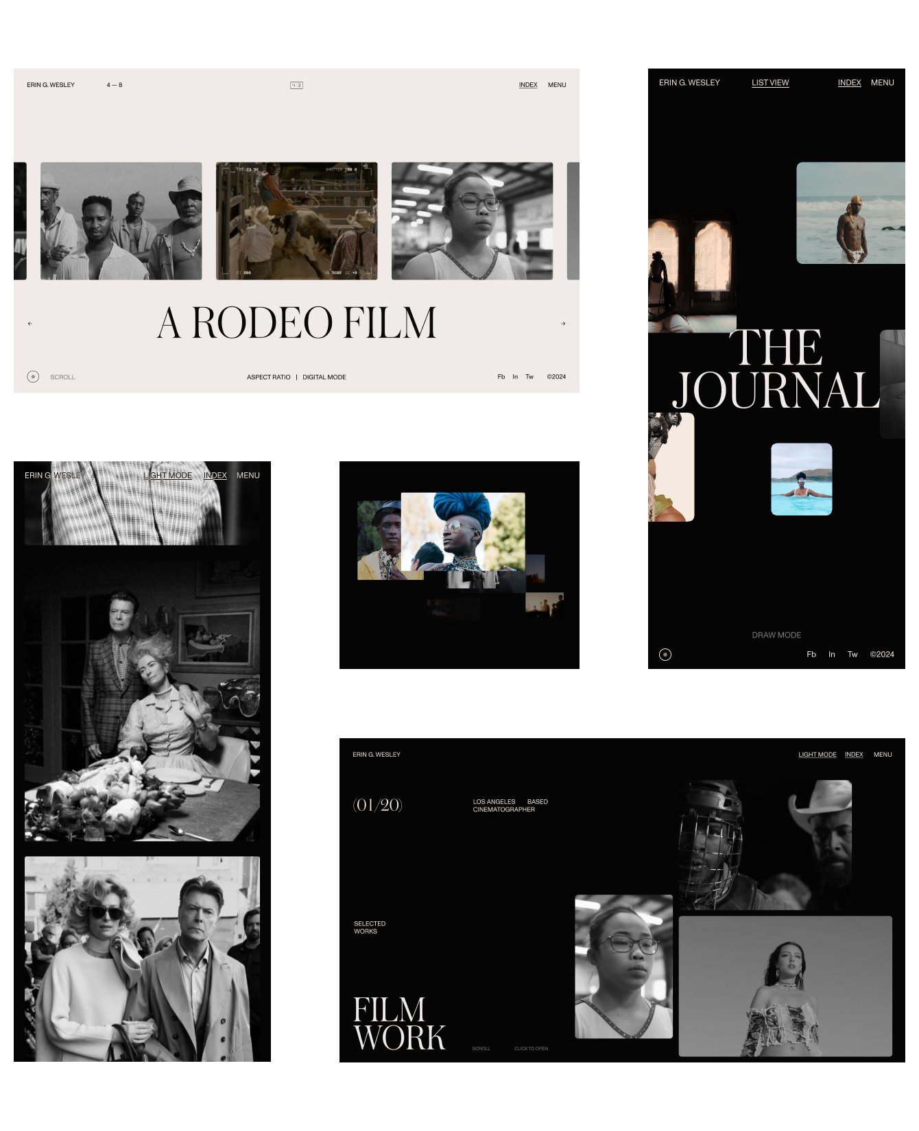 Эрин – молодая оператор-постановщик из Лос-Анджелеса, и к моменту, когда она обратилась в SALT AND PEPPER, ее карьера находилась на грани перехода в новую лигу. И чтобы этот переход состоялся, ей нужен был сайт-портфолио, который мог выгодно презентовать ее работы и зацепить глаз нужных людей в индустрии. А показать было что: работа над “Шан-Чи” Марвел, клип Криса Брауна, рекламный ролик для NBA, спецпроекты для Nike и Audi. Не хватало только упаковки, которая выделила бы Эрин на фоне других кандидатов и при этом была бы удобна для студийных сотрудников, которые занимаются подбором специалистов на проекты.