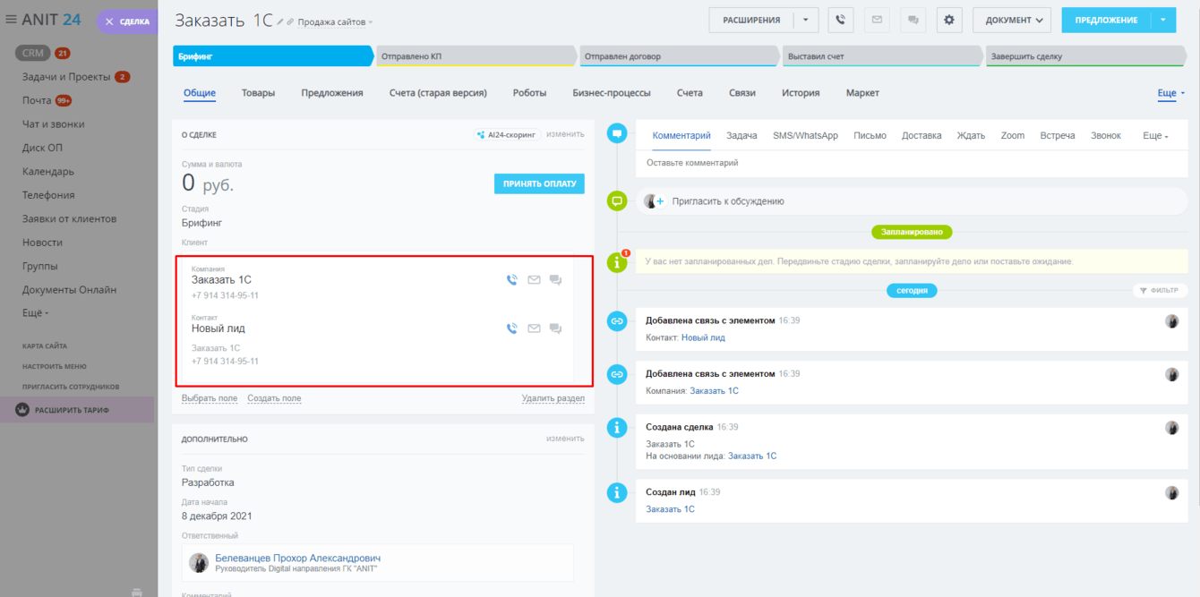 3. Автоматизация сбора и обработки заявок в CRM Битрикс24