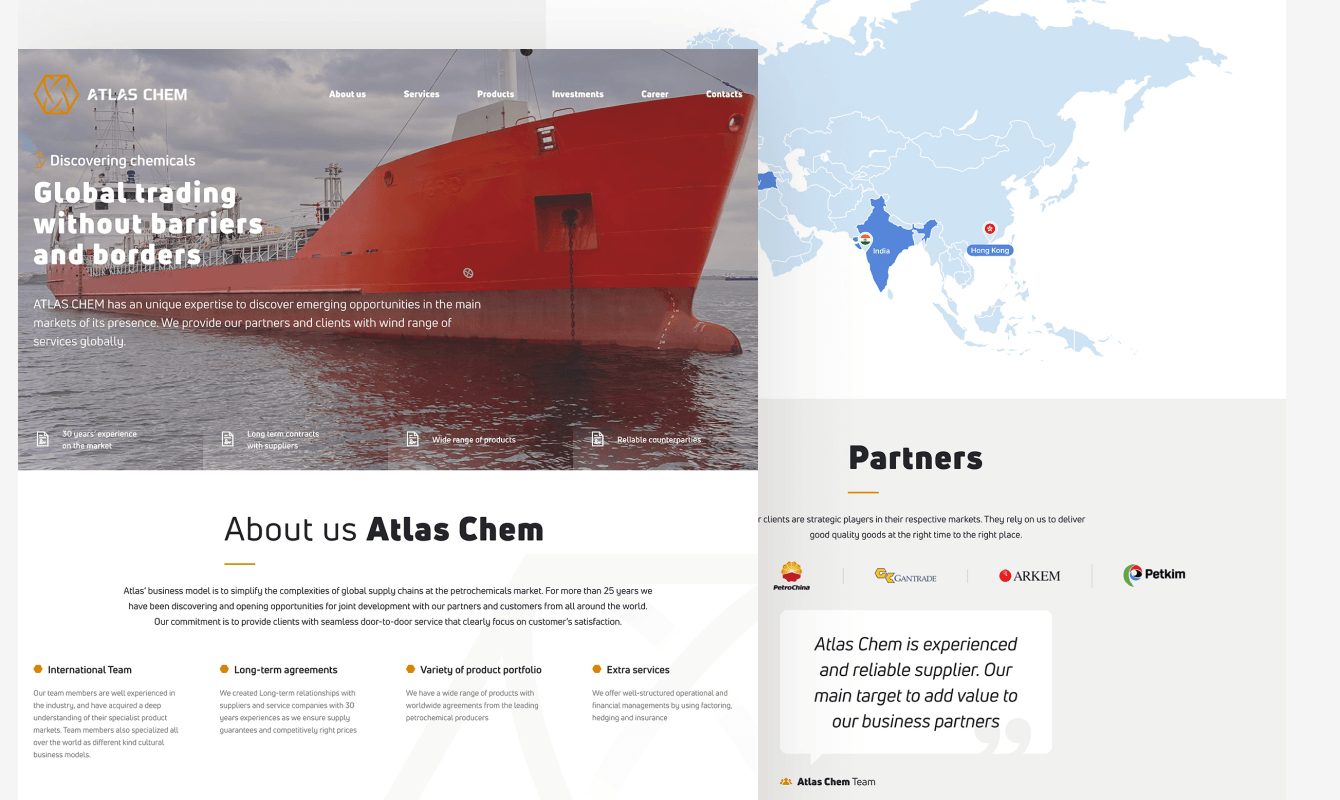 Компания ATLAS CHEM получила современные посадочные страницы, которые соответствуют их глобальным потребностям и помогают привлекать клиентов из разных частей мира.
